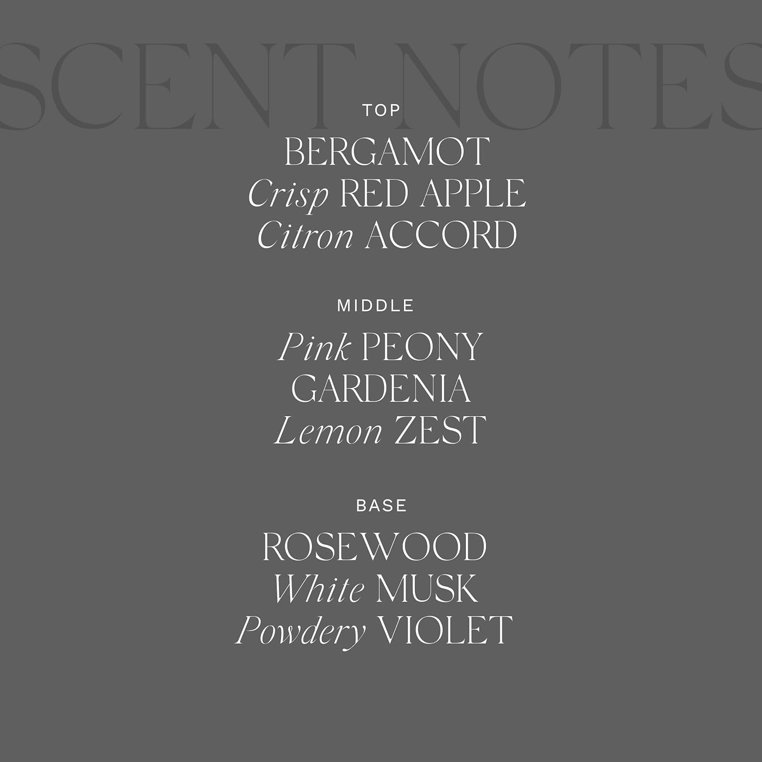 - Bright, Breezy & Natural: A bouquet of peony and gardenia pairs with a refined citrus accord made of bergamot, citron and lemon zest; lively but never overpowering, it finishes with powdery musks