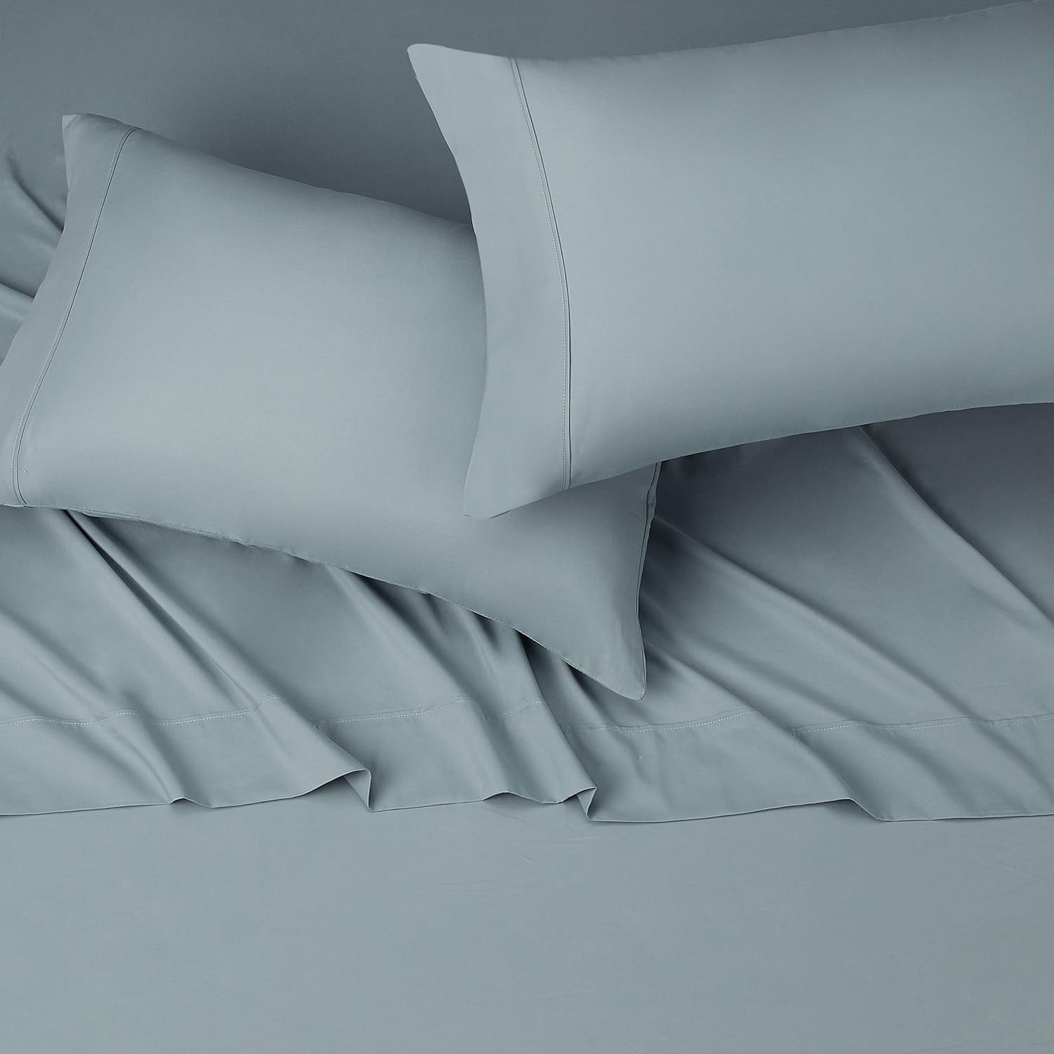 Amazon Basics Lightweight Super Soft, Wrinkle-Free Easy Care Microfiber 4 Piece Bed Sheet Set with 14-Inch Deep Pockets, Queen, Spa Blue, Solid