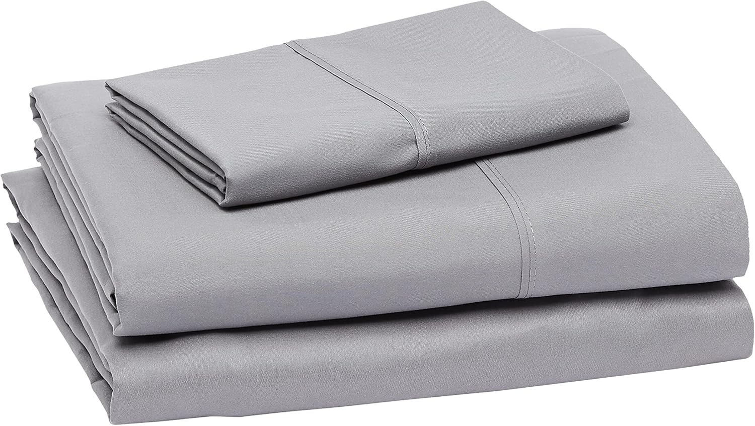 Amazon Basics Lightweight Super Soft Easy Care Wrinkle Free Microfiber 3 Piece Bed Sheet Set with 14-Inch Deep Pockets, Twin, Dark Gray, Solid, Kids, Men & Women Bedding