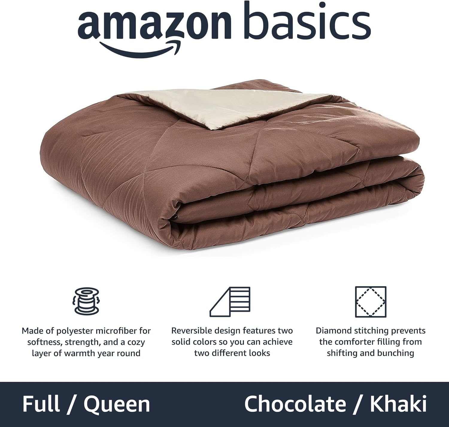 Amazon Basics Comforter Blanket Full/Queen, Reversible Lightweight Microfiber All Season Blanket, Chocolate/Khaki