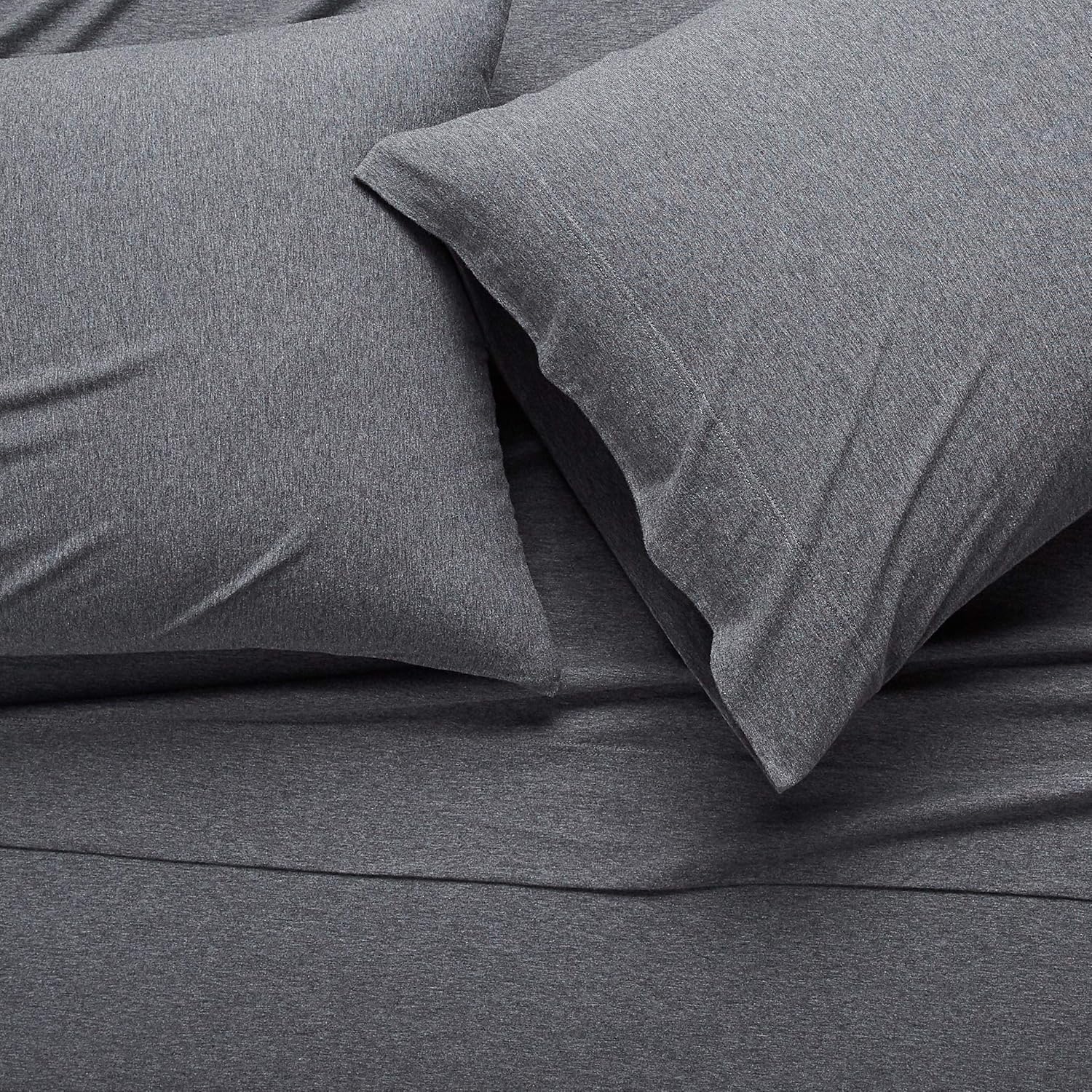 Amazon Basics 4 Piece Bed Sheet Set, 100% Cotton Jersey, Includes Super Soft, Flat and Fitted Sheets, Pillowcase, Queen, Dark Gray, Solid