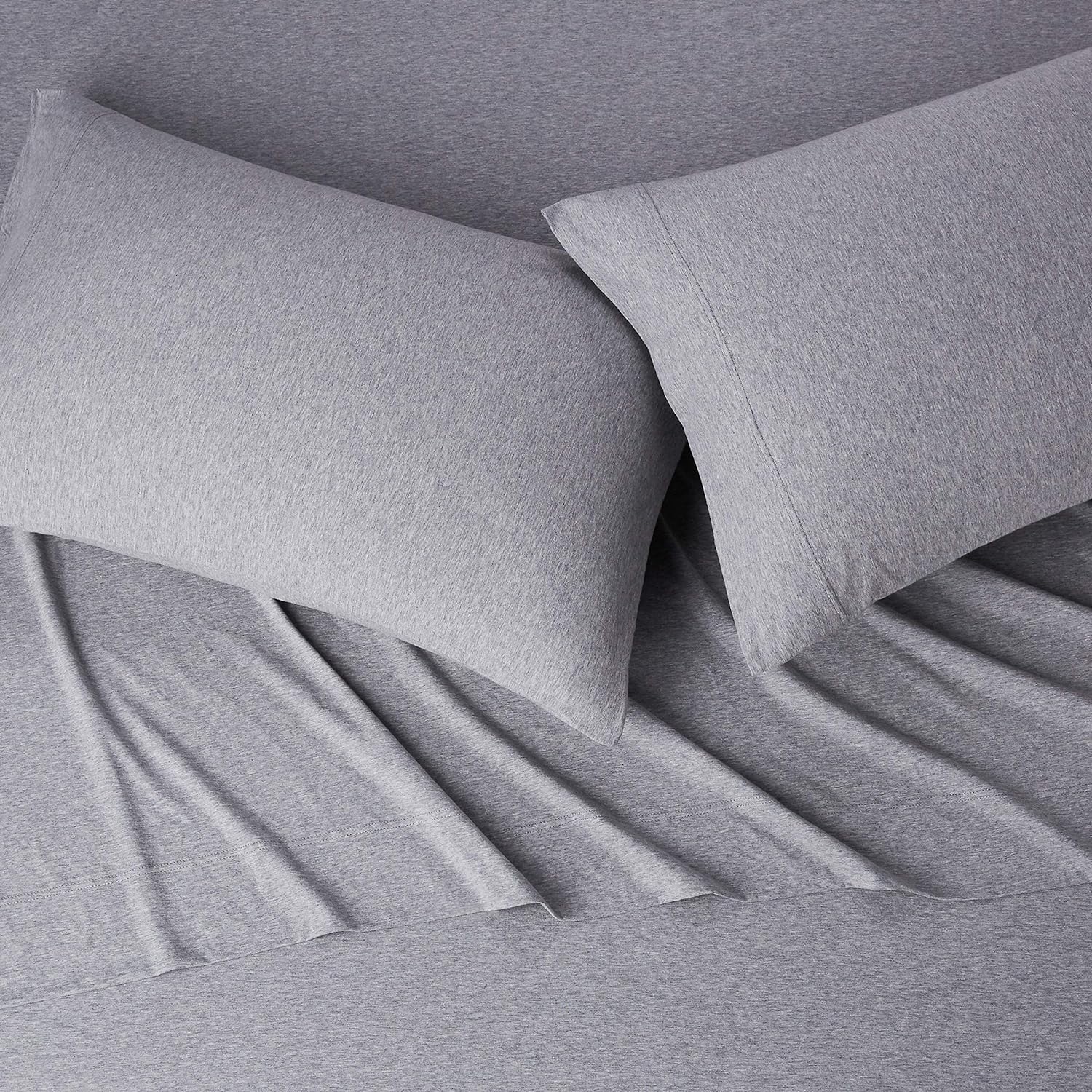 Amazon Basics 4 Piece Bed Sheet Set, 100% Cotton Jersey, Includes Super Soft, Flat and Fitted Sheets, Pillowcase, Full, Light Gray, Solid