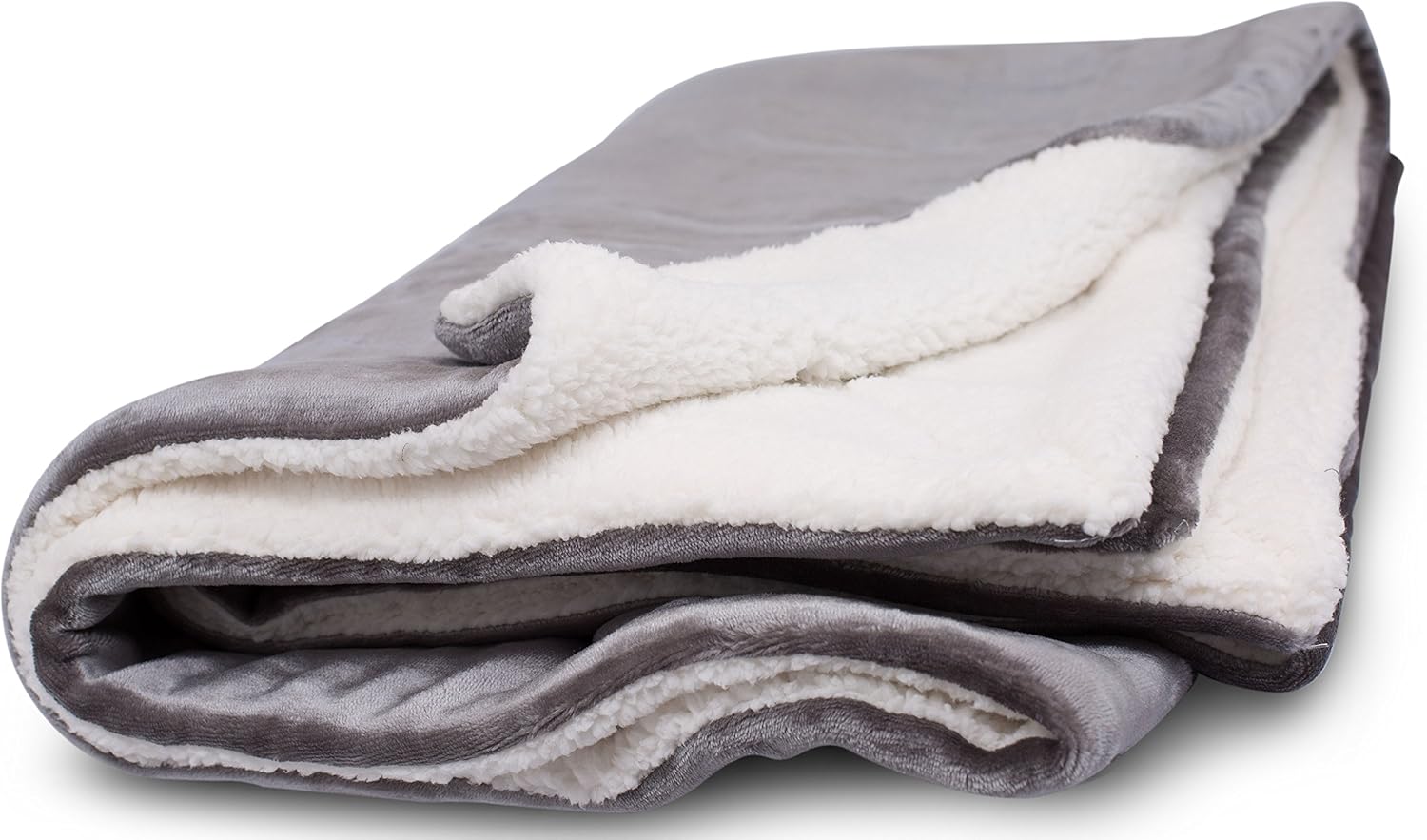 Internet’s Best Plush Reversible Sherpa Throw Blankets - Grey - Ultra Soft Couch Blanket - Light Weight Sofa Throw - 100% Microfiber Polyester - Easy Travel - Bed - 50 x 60