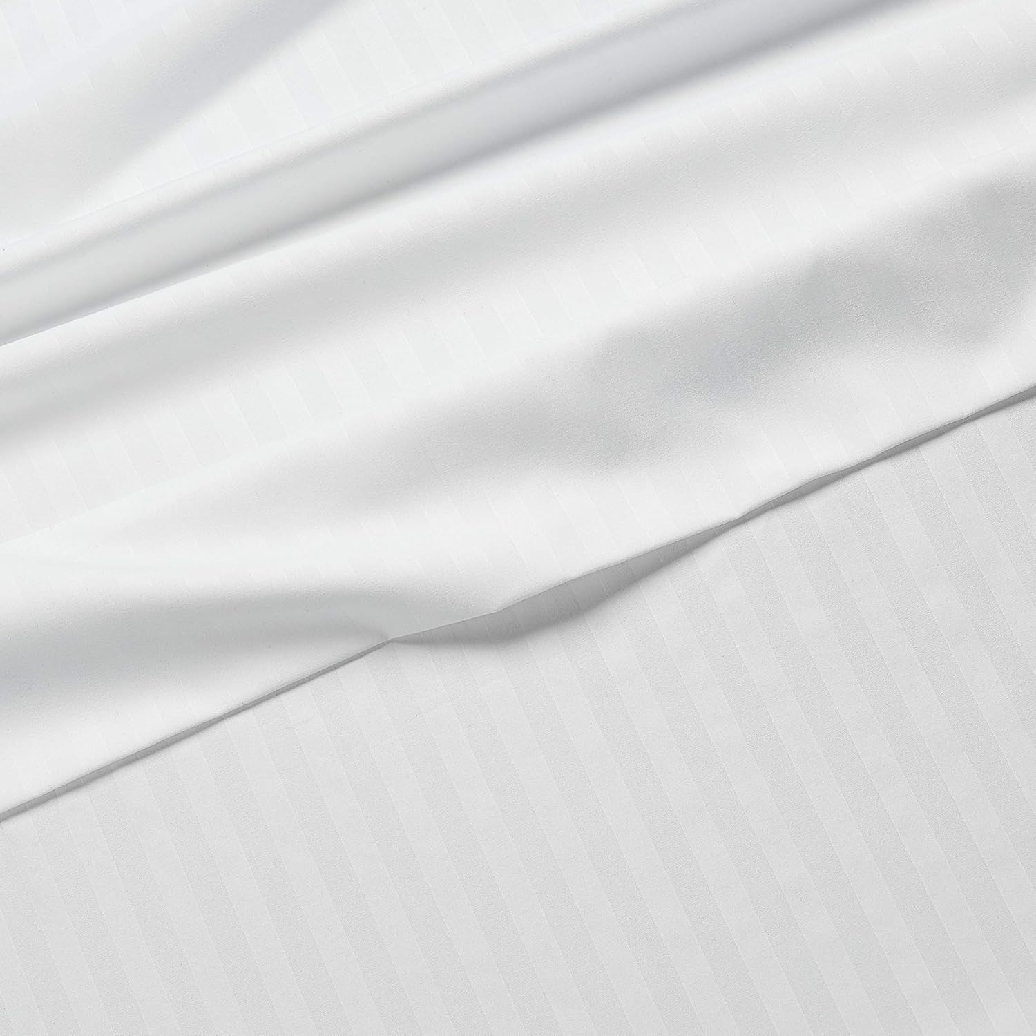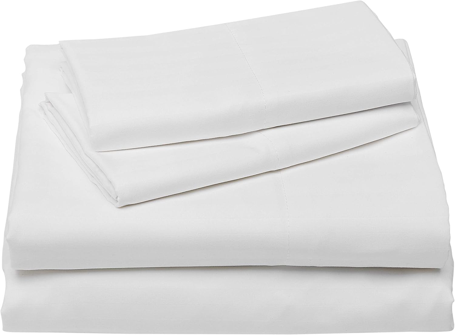 Amazon Basics Soft, Wrinkle-Free Bed Sheets Full Size, Deluxe Microfiber, Breathable, 4-Piece, Bright White Striped