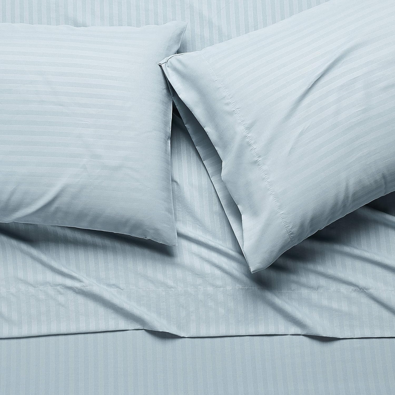 Amazon Basics Deluxe Microfiber Bed Sheets Full Size, 4-Piece, Spa Blue Striped
