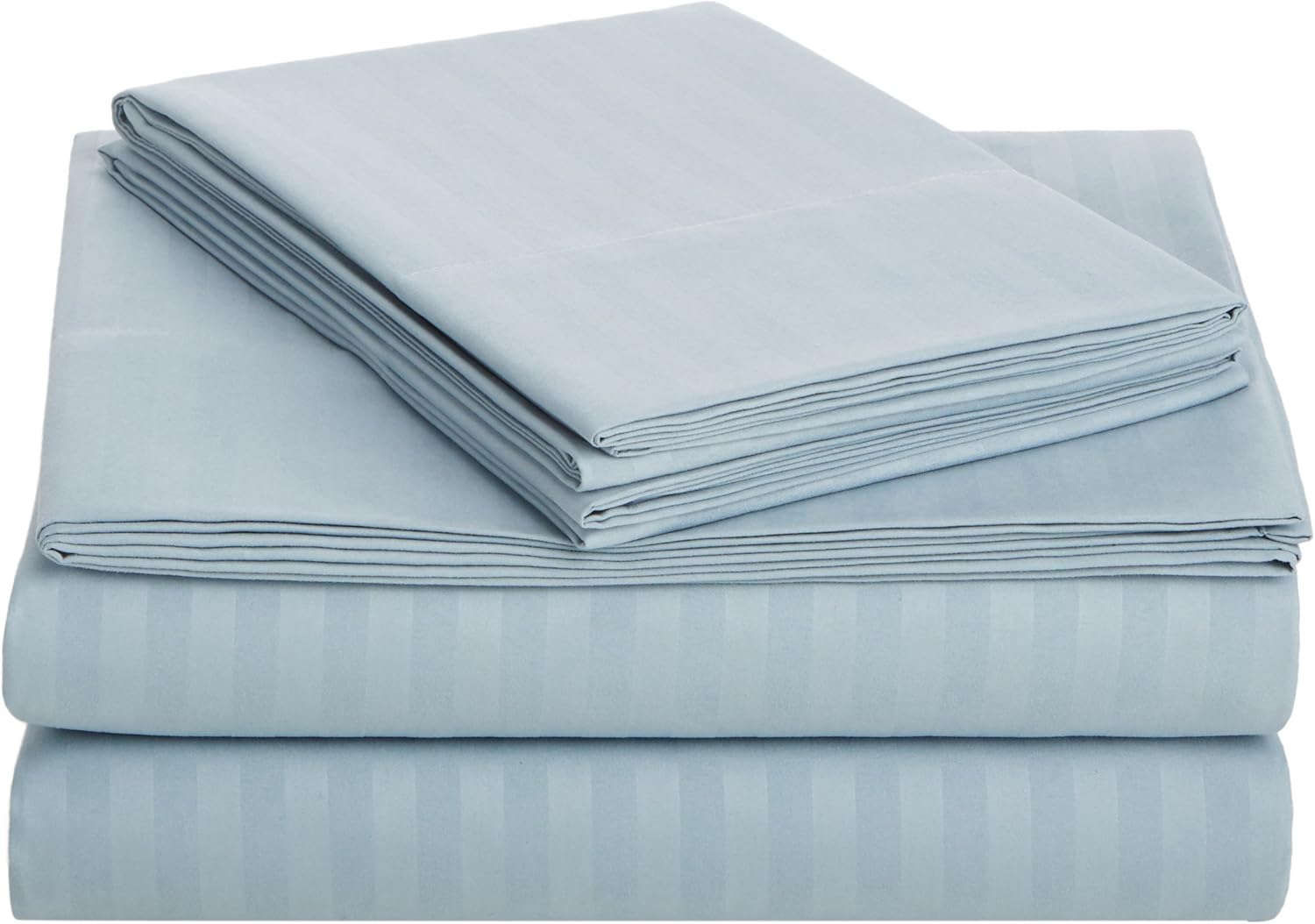 Amazon Basics Soft, Breathable Microfiber Bed Sheets, Queen Size, 4-Piece, Spa Blue Striped
