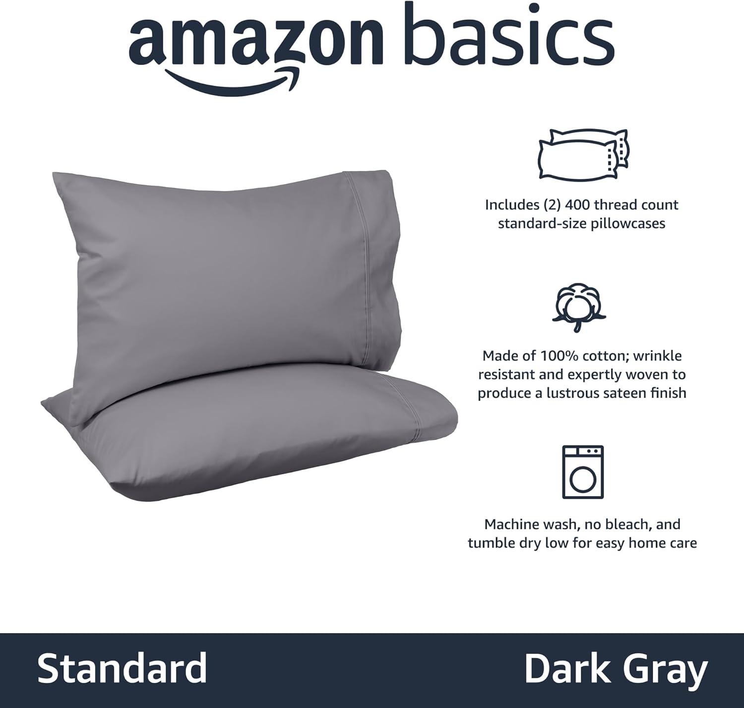 - Includes (2) 20 x 30-inch Standard-size pillowcases in Dark Gray; matches the Amazon Basics 400 Thread Count Sheet Set (sold separately)