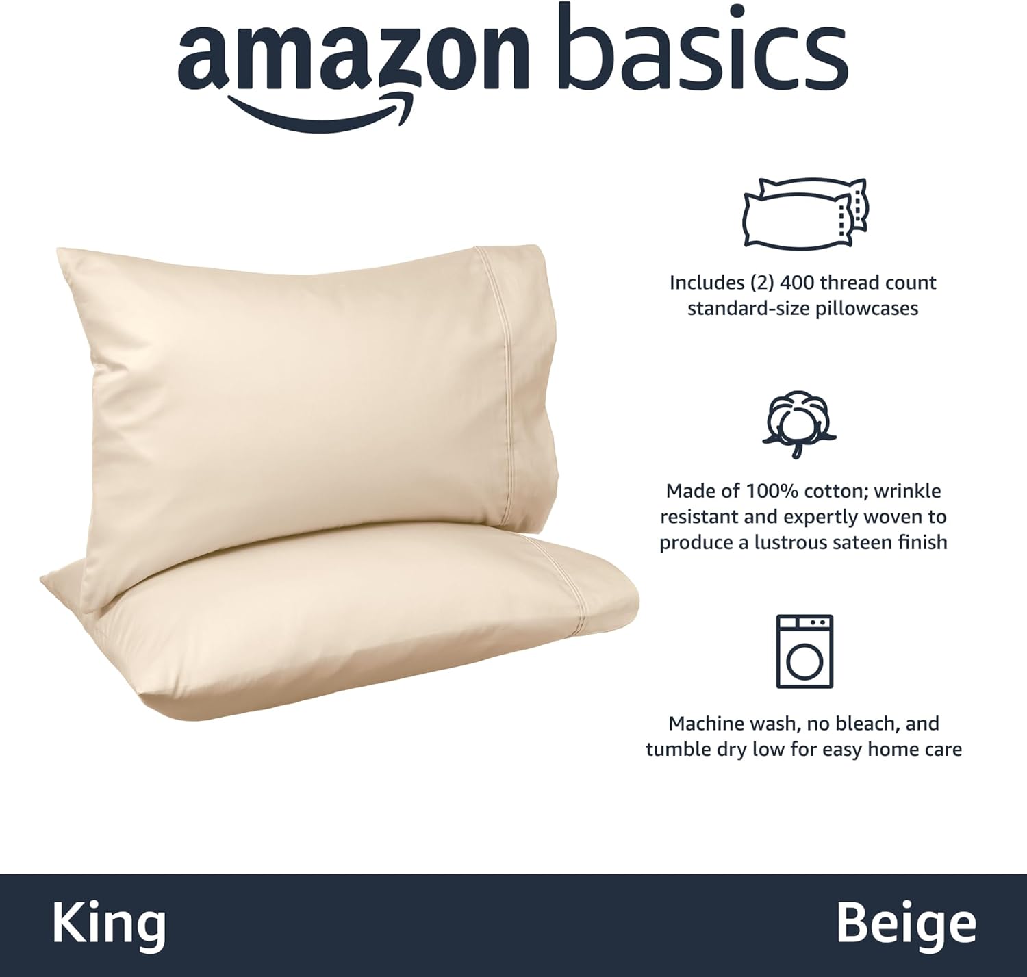 - Includes (2) 20 x 40-inch King-size pillowcases in Beige; matches the Amazon Basics 400 Thread Count Sheet Set (sold separately)
