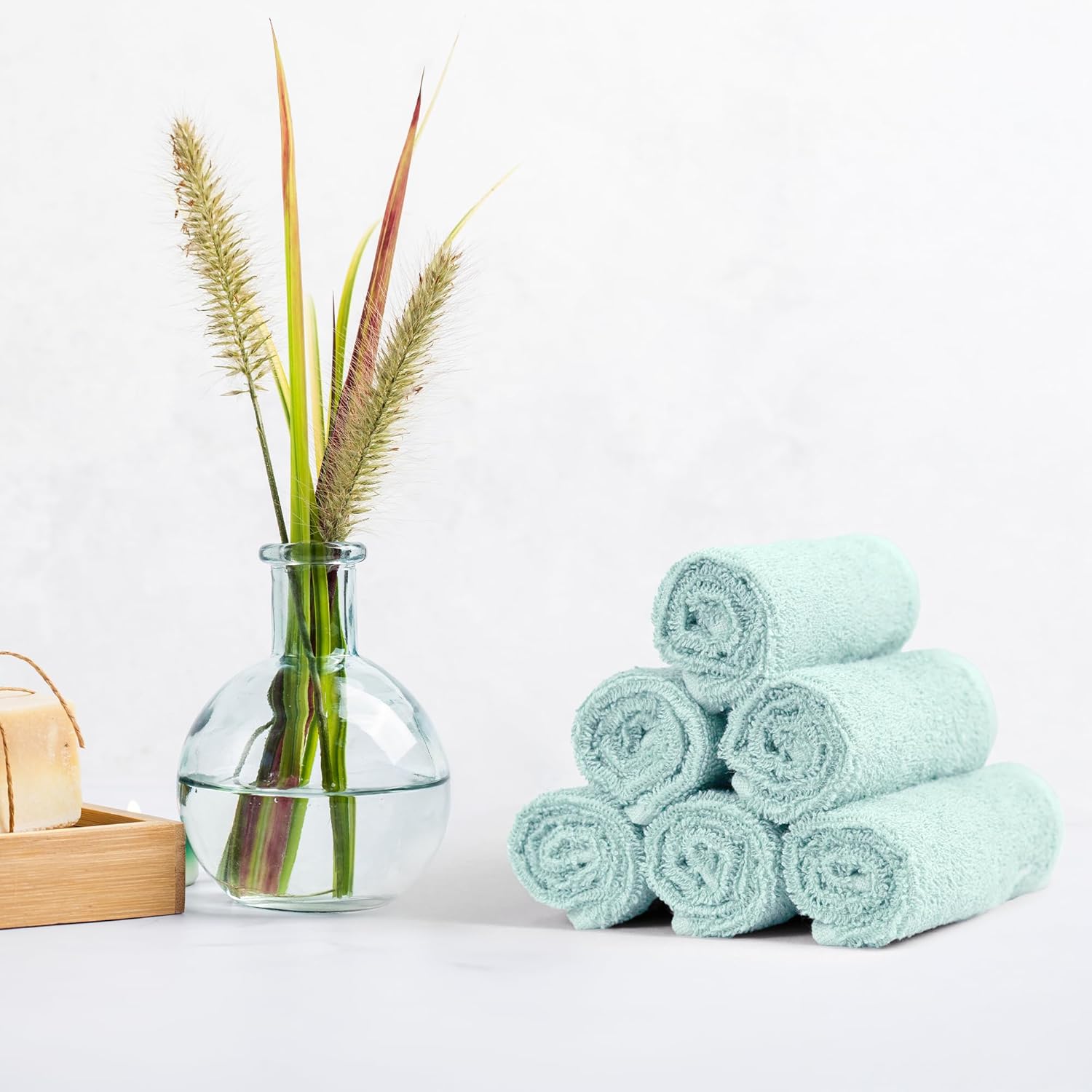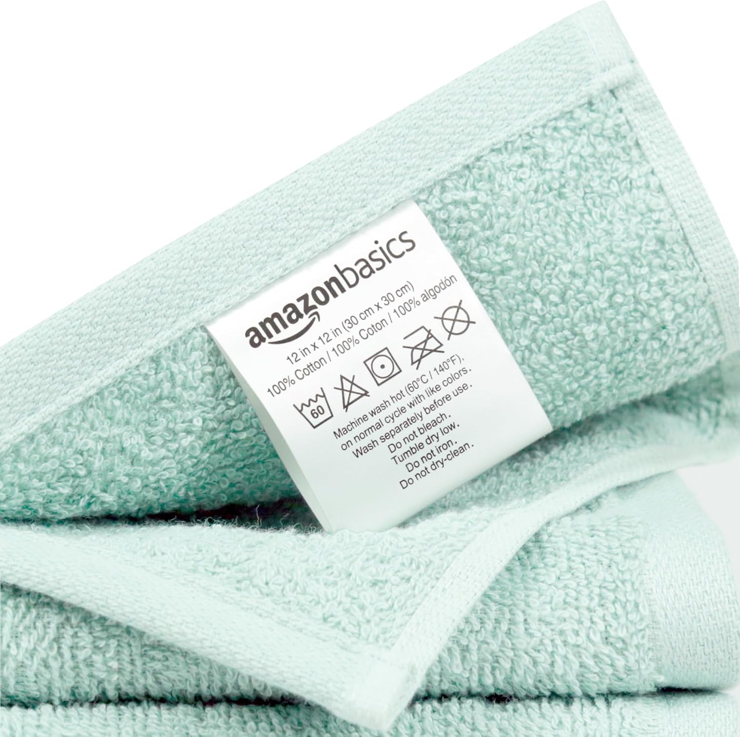 Amazon Basics face Towels for bathroom, 100% Cotton Extra Absorbent washcloth, Fast Drying - salon towel - 24 Pack Ice Blue (12 x 12 inches)