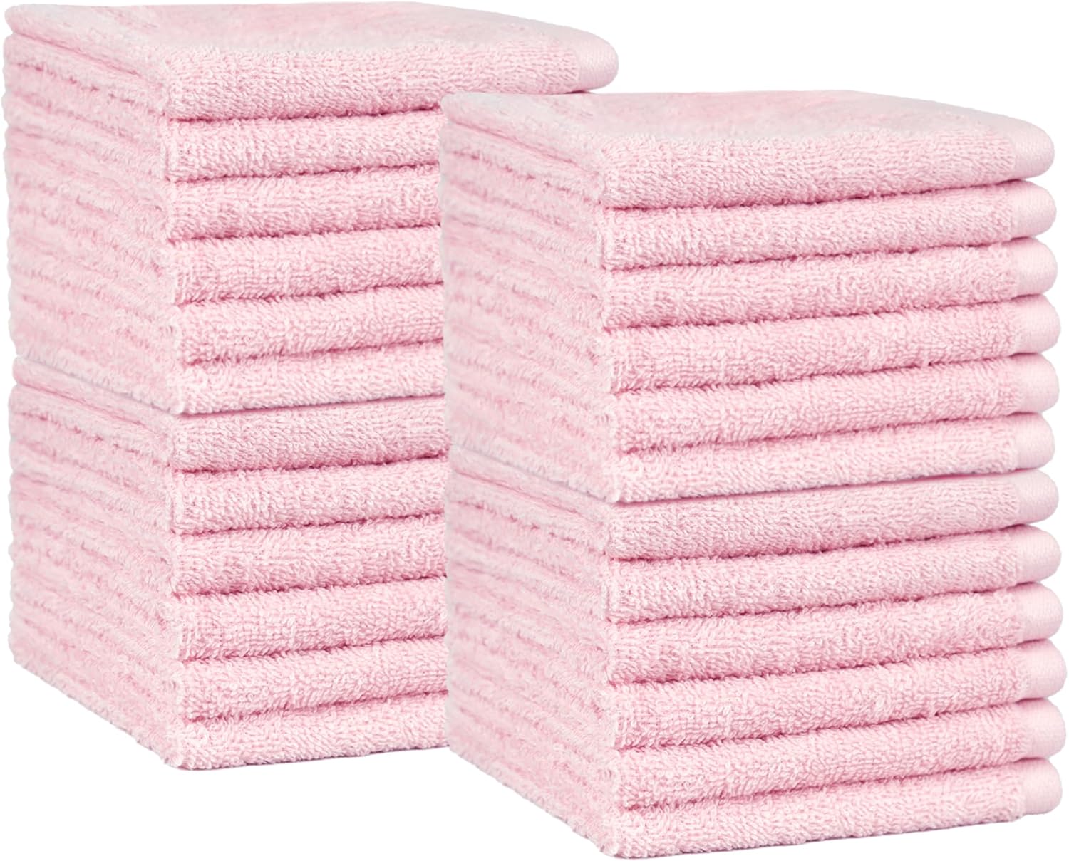 Amazon Basics face Towels for bathroom, 100% Cotton Extra Absorbent washcloth , Fast Drying - salon towel - 24 Pack Petal Pink (12 x 12 inches)
