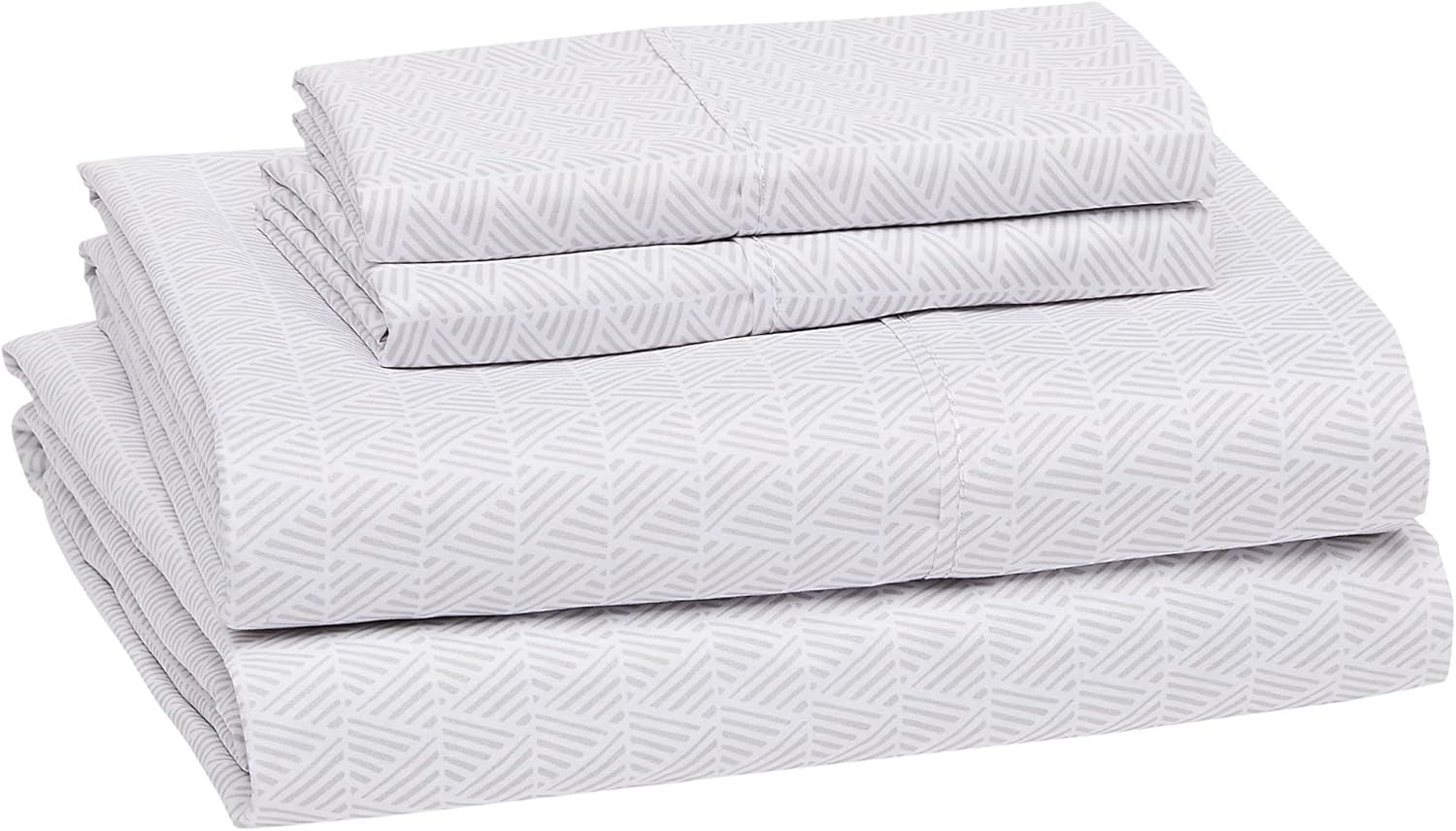Amazon Basics Lightweight Super Soft, Comfortable Easy Care Microfiber 4 Piece Bed Sheet Set with 14-Inch Deep Pockets, Queen, Gray Crosshatch, Printed