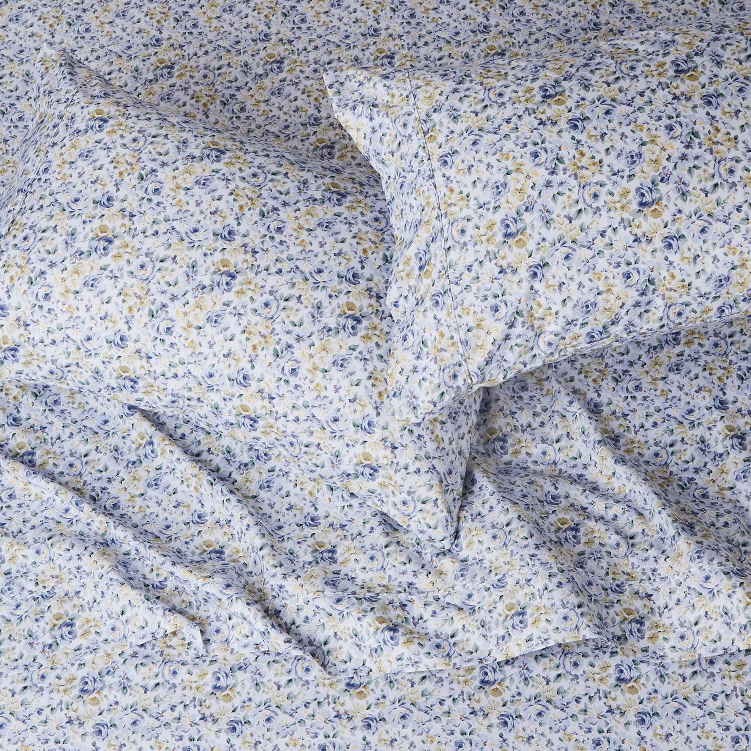 Amazon Basics Lightweight Super Soft Easy Care Microfiber 4 Piece Bed Sheet Set With 14-inch Deep Pockets, Queen, Blue Floral,Printed