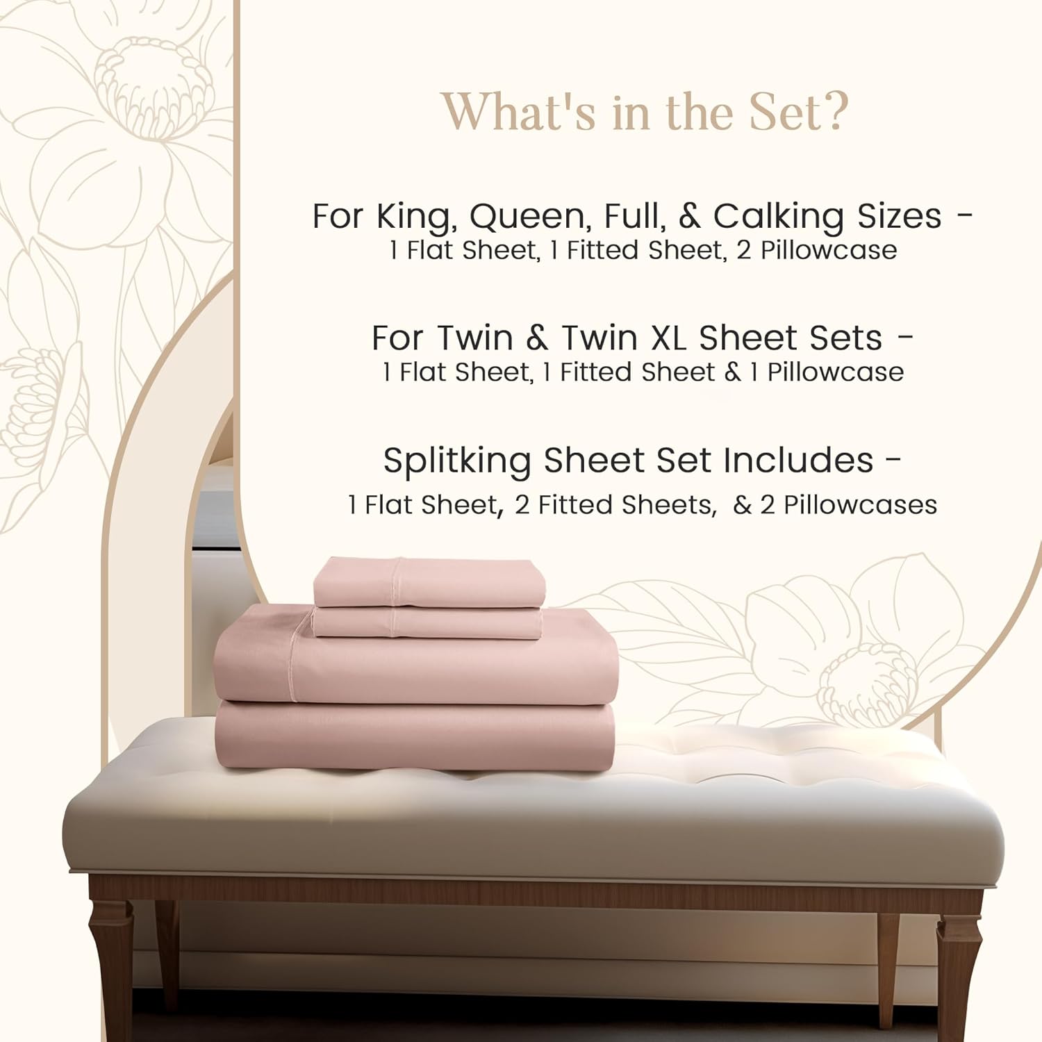 100% Cotton Bed Sheets Queen Size Bed Set, 800 TC 15" Deep Pocket Queen Sheet Set, Soft Breathable Sateen Weave Egyptian Cotton Sheets No Pill & Shrink, Machine Washable Pink Sheet- Sepia Rose