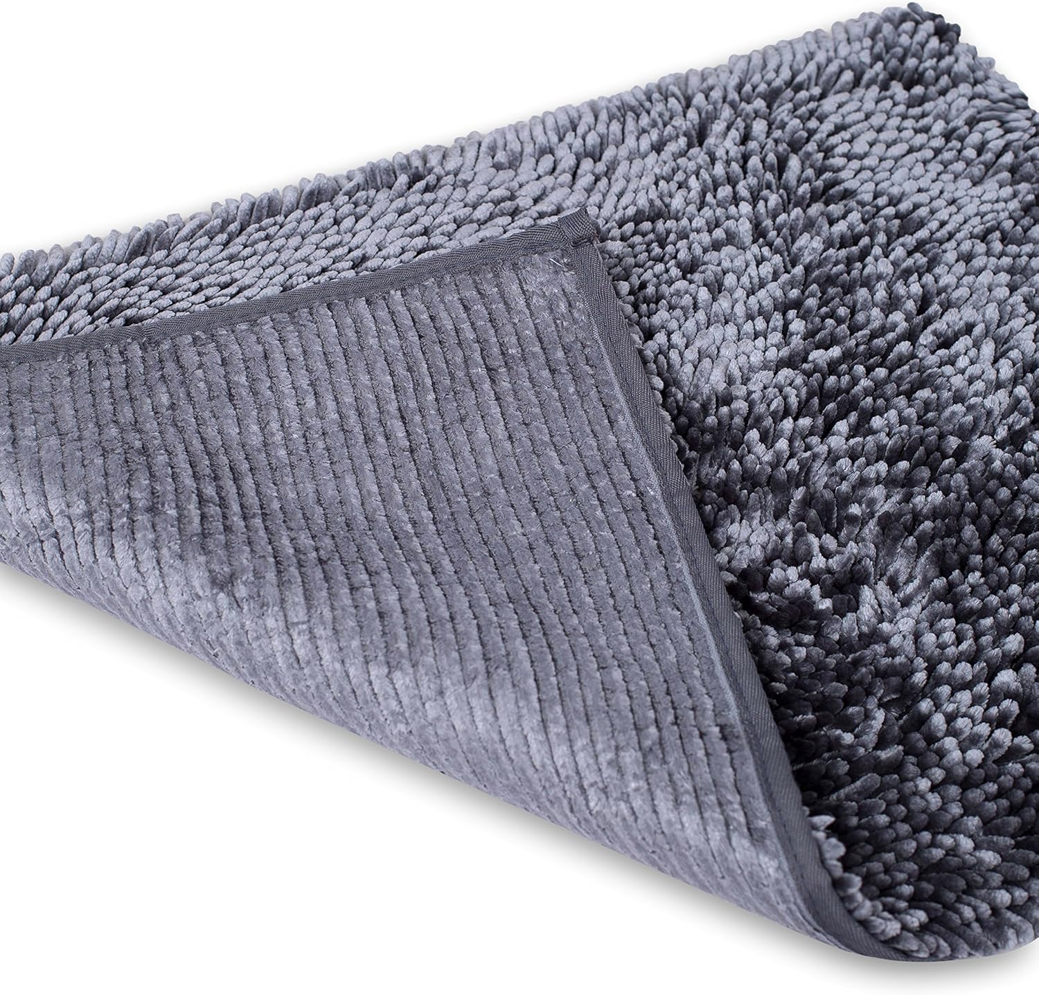 Internet's Best Microfiber Chenille Bath Mat - Non Slip Bathroom Rug - Soft Absorbent Carpet - Fast Drying Shower (24 x 17, Gray)