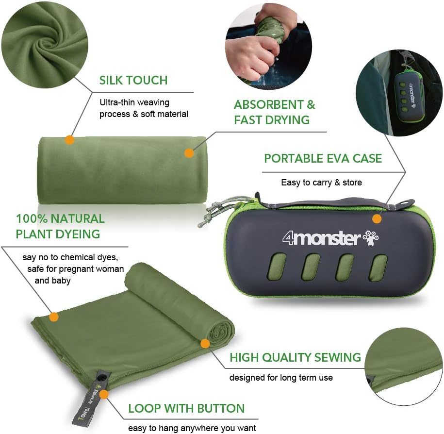 4Monster Camping Towel Super Absorbent-Quick Dry Microfiber Towel Ultra Compact & Soft-Travel Towel Lightweight for Backpacking,Hiking,Gym,Beach,Swimming,Yoga
