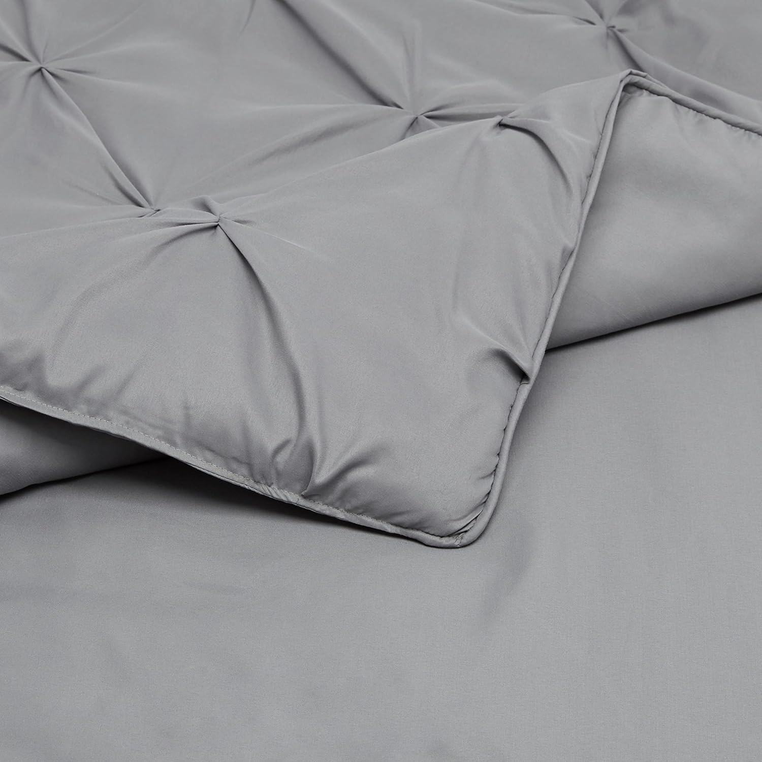 Amazon Basics Soft, Warm Queen Size Comforter Sets, All-Season Down-Alternative 3-Piece Bedding Set, Pinch Pleat Design, Full/Queen Size, Dark Grey