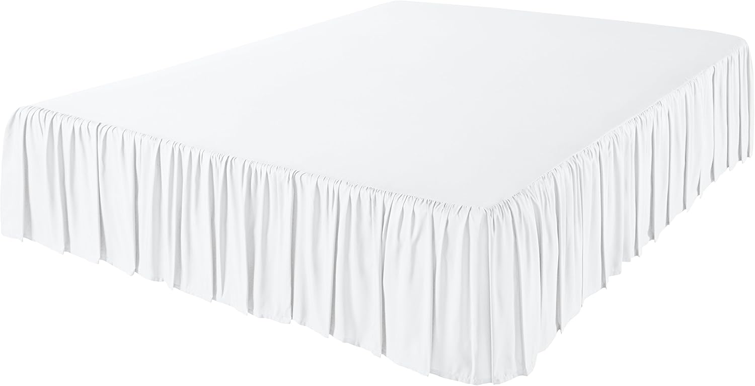 Amazon Basics Lightweight Ruffled Bed Skirt, Classic Style, Soft and Stylish 100% Microfiber With 16" Drop, King, Bright White, Solid