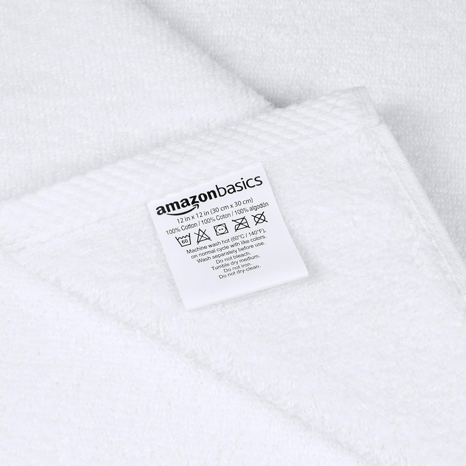 Amazon Basics Cotton Washcloths, Quick-Dry, 12" x 12", 12-Pack, White