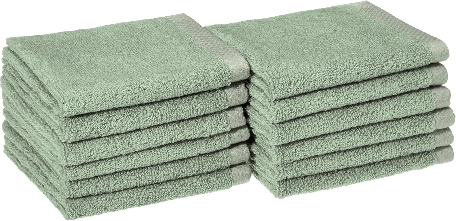 Amazon Basics Cotton Washcloths, Quick-Dry, 12" x 12", 12-Pack, Seafoam Green
