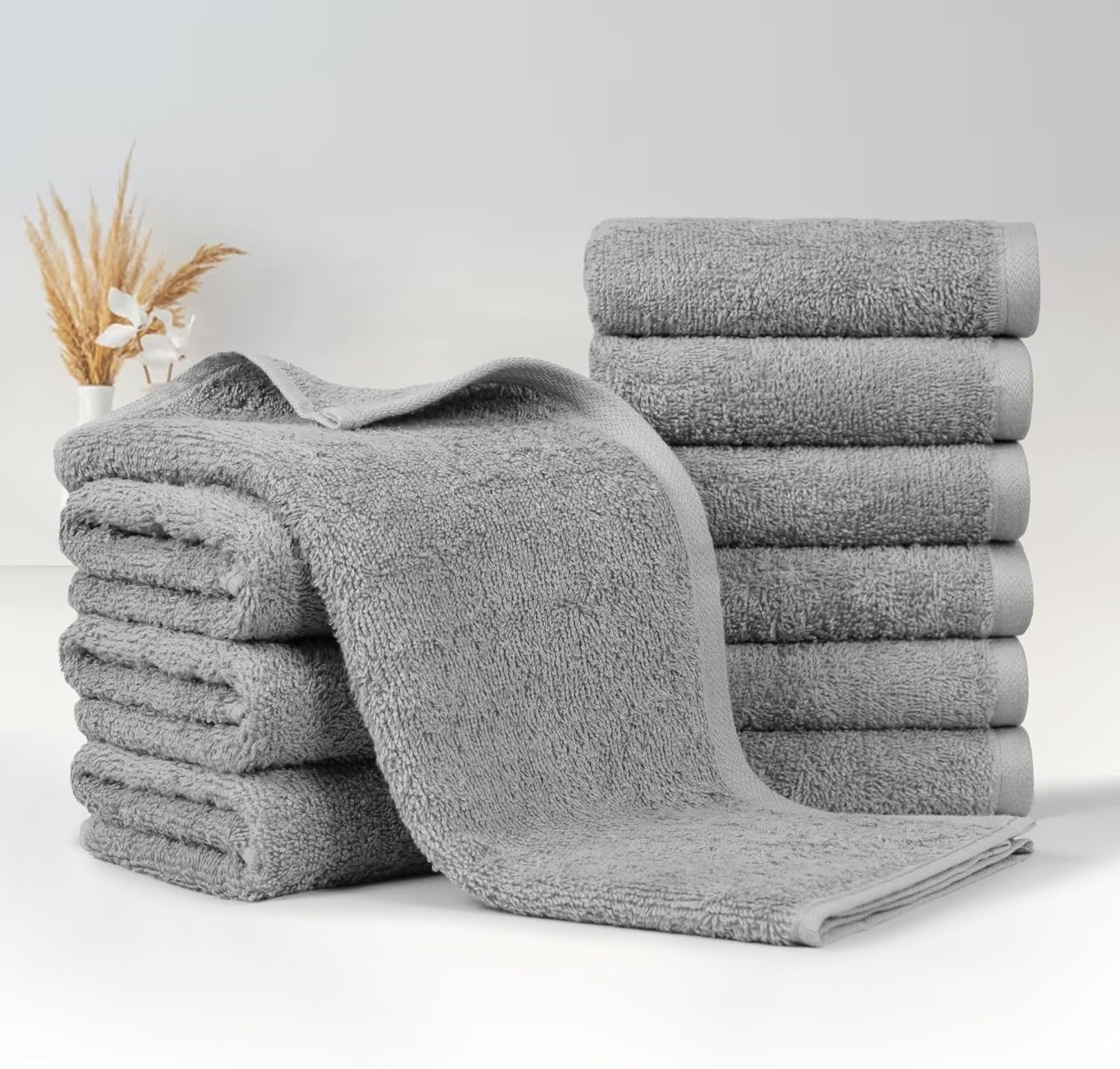 Amazon Basics Soft and Thick Cotton Hand Towels, 16" x 26", Gray, 12-Pack