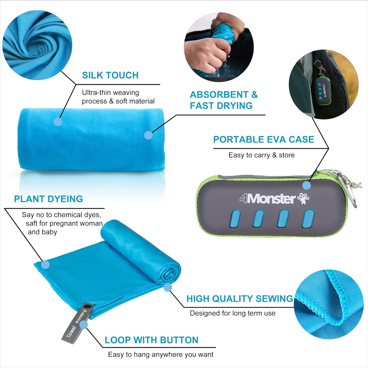 4Monster Camping Towel Super Absorbent-Quick Dry Microfiber Towel Ultra Compact & Soft-Travel Towel Lightweight for Backpacking,Hiking,Gym,Beach,Swimming,Yoga