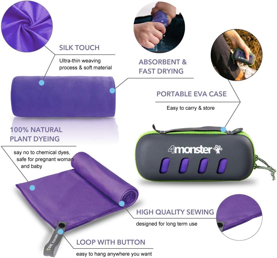 4Monster Camping Towel Super Absorbent-Quick Dry Microfiber Towel Ultra Compact & Soft-Travel Towel Lightweight for Backpacking,Hiking,Gym,Beach,Swimming,Yoga