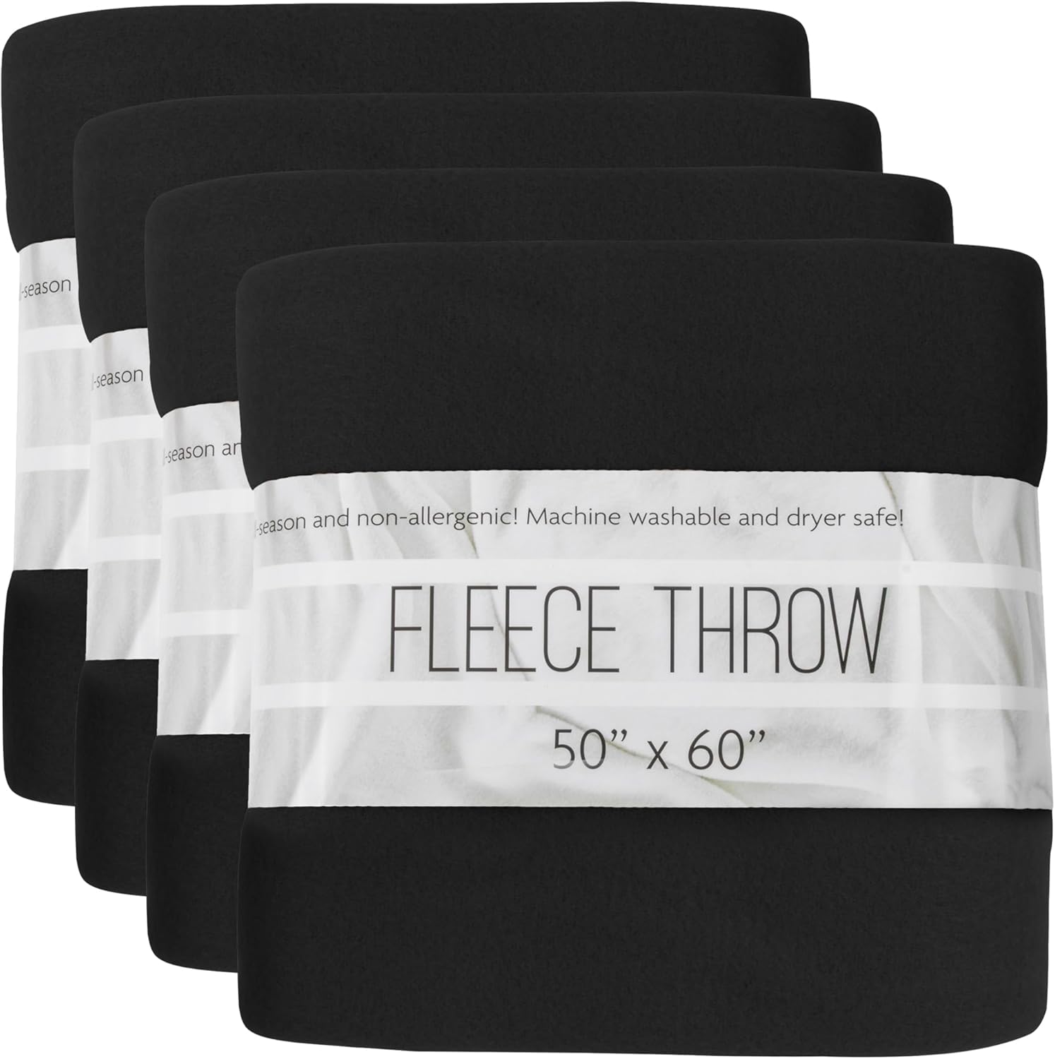 (24 Pack) Bulk Fleece 50x60 Throw Blankets for Wedding Favors, Homeless Women, Men, Homes, Bed, Sofa, Couch, Office, Pet Blankets, Travel | Soft Warm Lightweight Throw Blankets in Bulk (Black)
