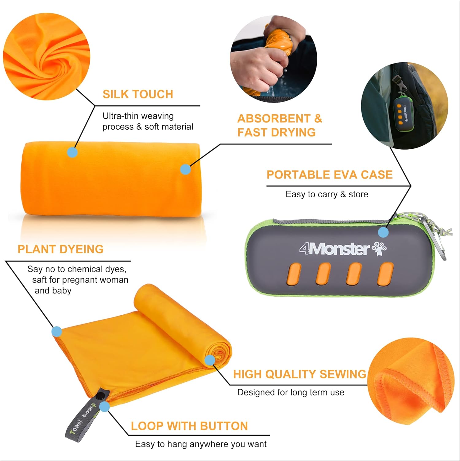 4Monster Camping Towel Super Absorbent-Quick Dry Microfiber Towel Ultra Compact & Soft-Travel Towel Lightweight for Backpacking,Hiking,Gym,Beach,Swimming,Yoga