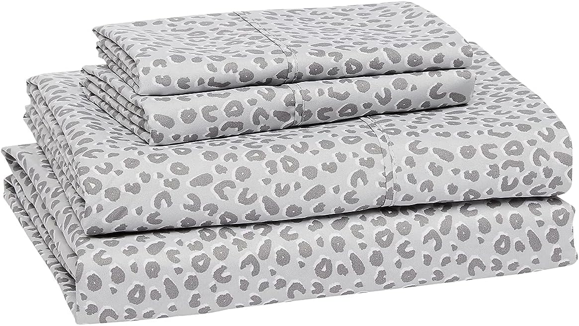 Amazon Basics Lightweight Super Soft Easy Care Microfiber 4 Piece Bed Sheet Set With 14-inch Deep Pockets - Queen, Gray Cheetah,Printed