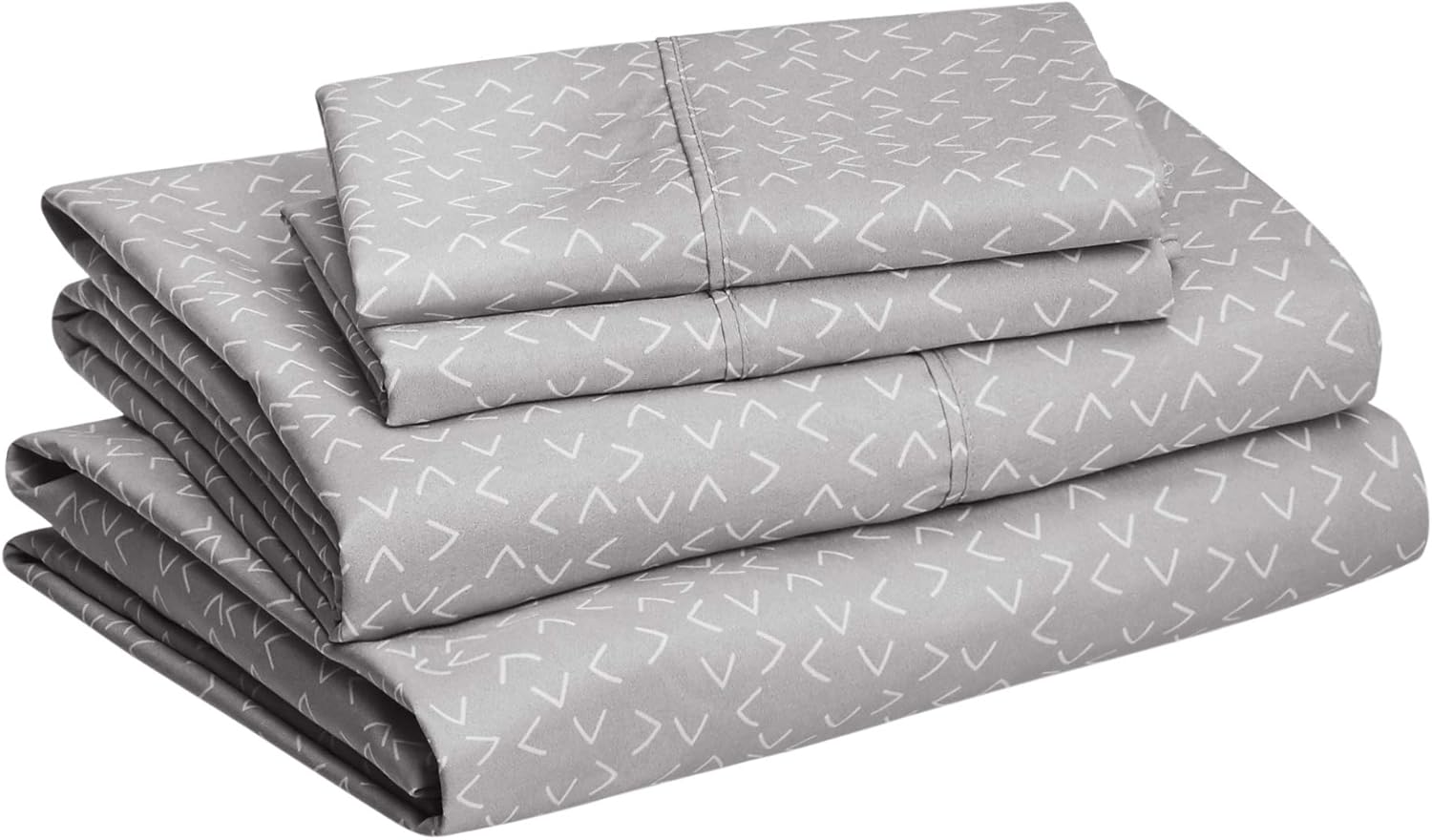 Amazon Basics Lightweight Super Soft Easy Care Microfiber 4 Piece Bed Sheet Set With 14-inch Deep Pockets - Queen, Grey Arrows,Printed