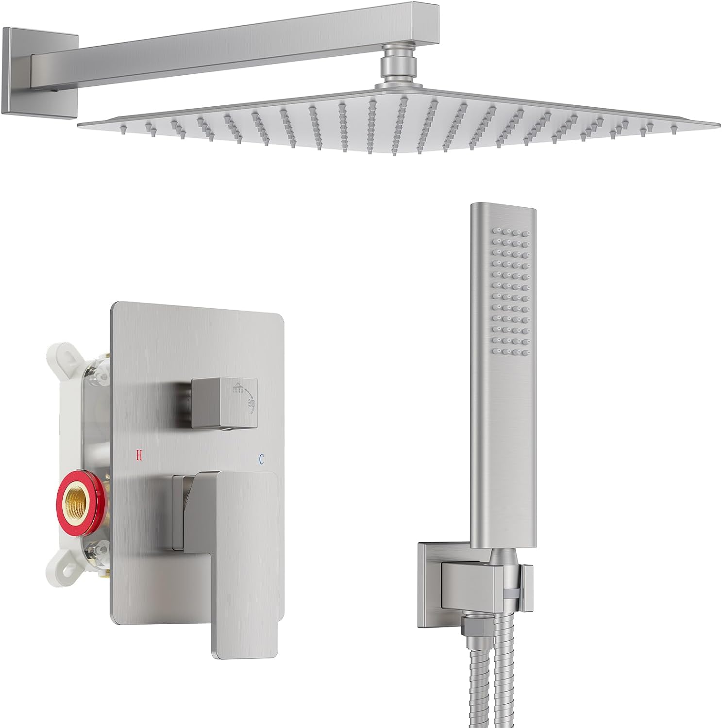 Iriber 12-Inch Rainfall Shower System with Handheld Combo, Brushed Nickel Finish, High Pressure Brass Shower Set