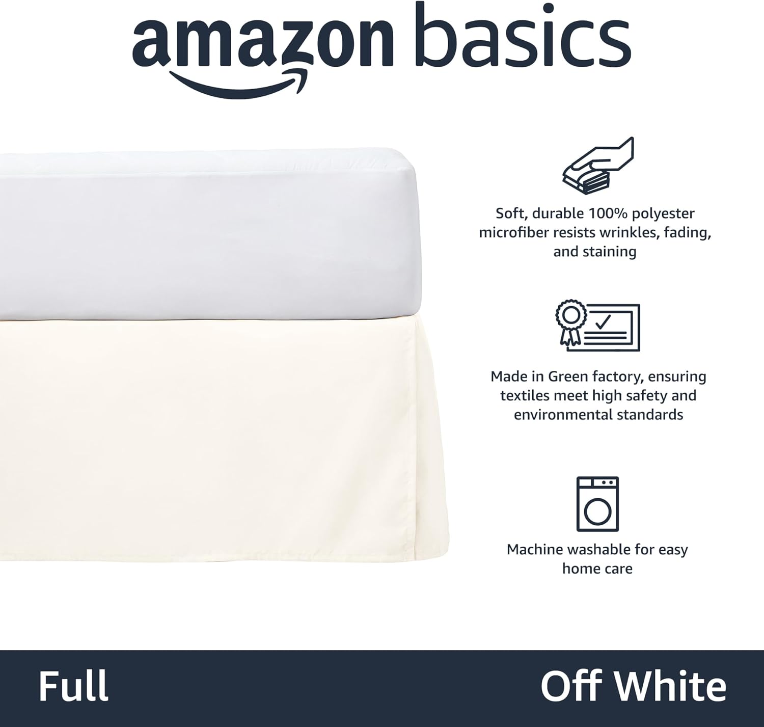 Amazon Basics Lightweight Pleated Bed Skirt, Full, Off White, Solid