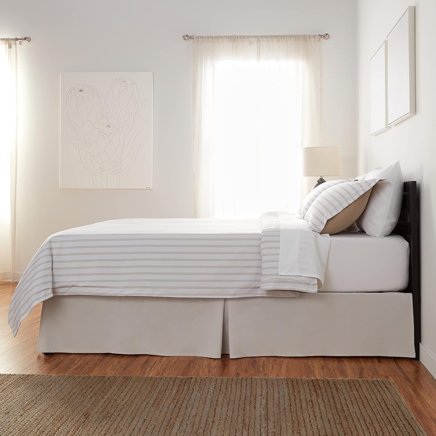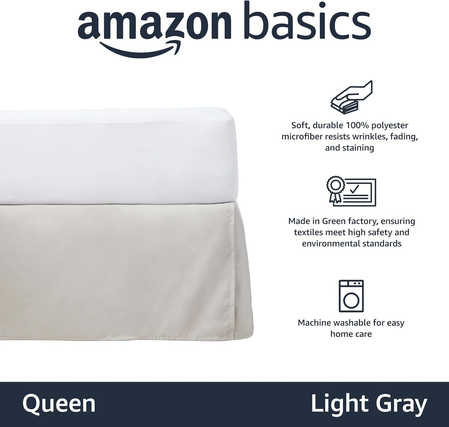 Amazon Basics Lightweight Pleated Bed Skirt, Queen, Light Grey, Solid