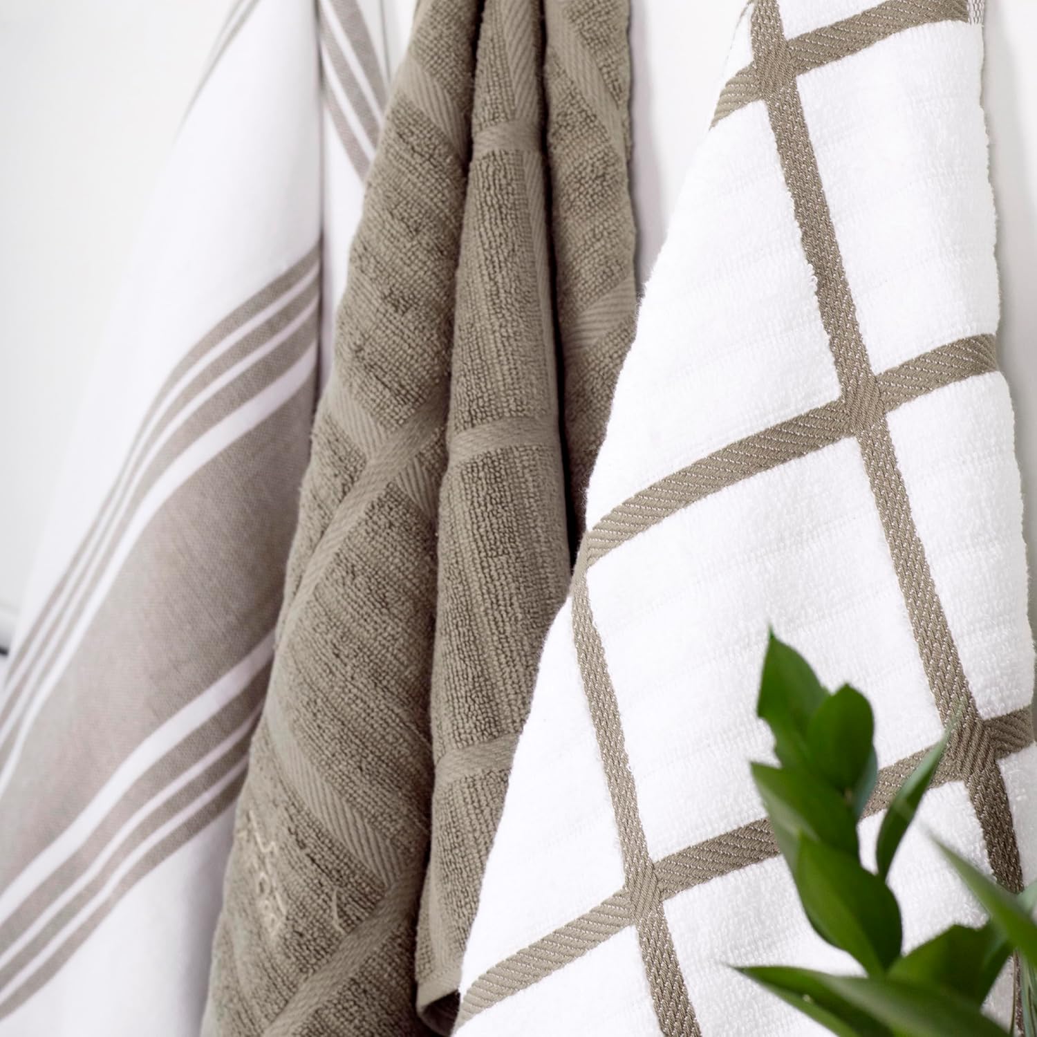 All-Clad Checked Kitchen Towel: Highly Absorbent, Super Soft Long Lasting - 100% Cotton, 17"x30" Tea Towel for Cleaning & Drying Dishes, Pans, Glassware, or Countertops, (1-Pack), Mushroom