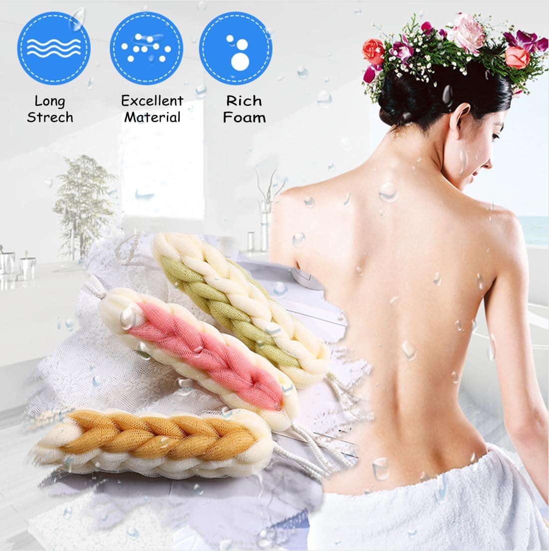 - ✔️USE FLEXIBLE: The mesh of bath sponge was soft and durable enough to used on the most delicate skin. would never scratch your skin. It also can effectively clean the skin and dirt. The braided loofah rope is perfect for cleaning the back, neck, shoulders, feet and hard to reach areas. The durable shower sponges are not easy to fall apart.