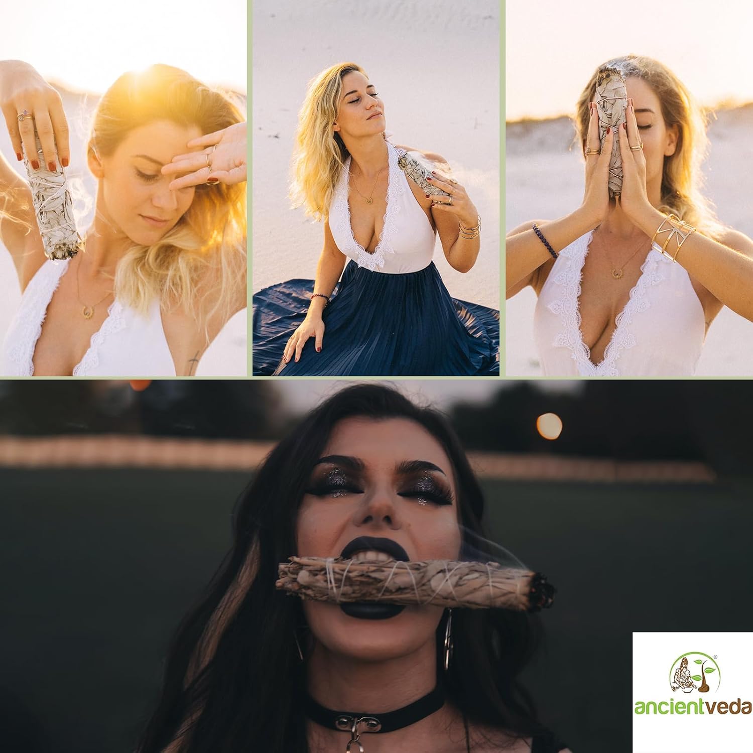 Ancient VEDA 4 Inch White Sage Smudge Sticks Bulk with Starter Guide (6 Pack) Smudge Sticks Sage for Cleansing House | White Sage for Smudging and Negative Energy Yoga | California Sage Bundles
