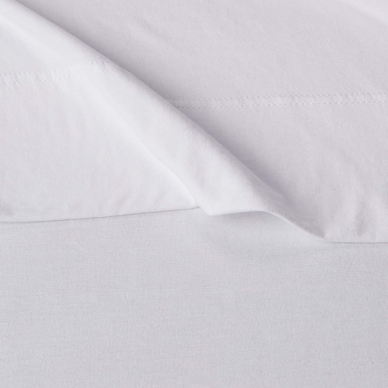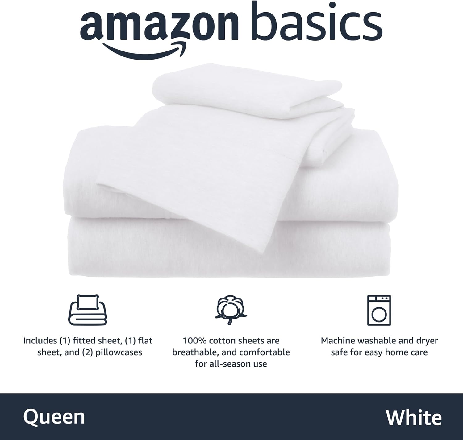 Amazon Basics 4 Piece Comfortable Cotton Jersey Bed Sheet Set, Includes Soft Flat and Fitted Sheets, Pillowcase, Queen, White, Solid