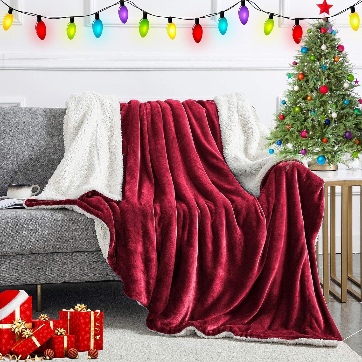 IR Imperial Rooms Sherpa Fleece Throw Blanket Twin Size for Couch - Thick and Warm Fluffy Blankets for Winter, Soft and Fuzzy Twin Blanket for Bed, Burgundy, 60x80 Inches