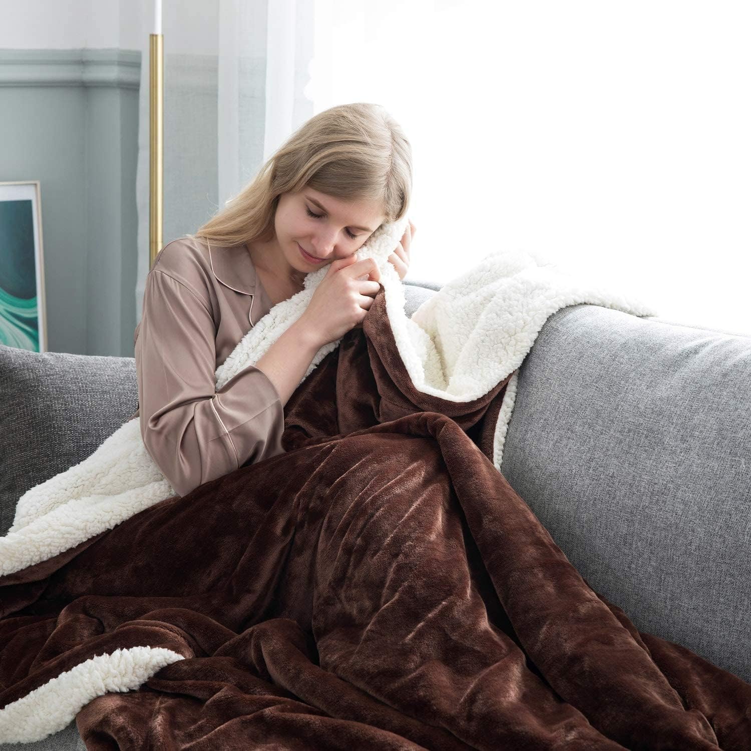 - THICK & WARM: The fluffy fabric will keep you warm from both sides. Enjoy being cuddled up by this soft and calming blanket whenever you're ready to snuggle up. Super soft silk touch flannel front and a plush thick fluffy Sherpa reverse offer you optimal comfort. Soft, cozy, and lightweight. The fabulous color enhances this Sherpa throw blanket with an elegant and superior appearance.