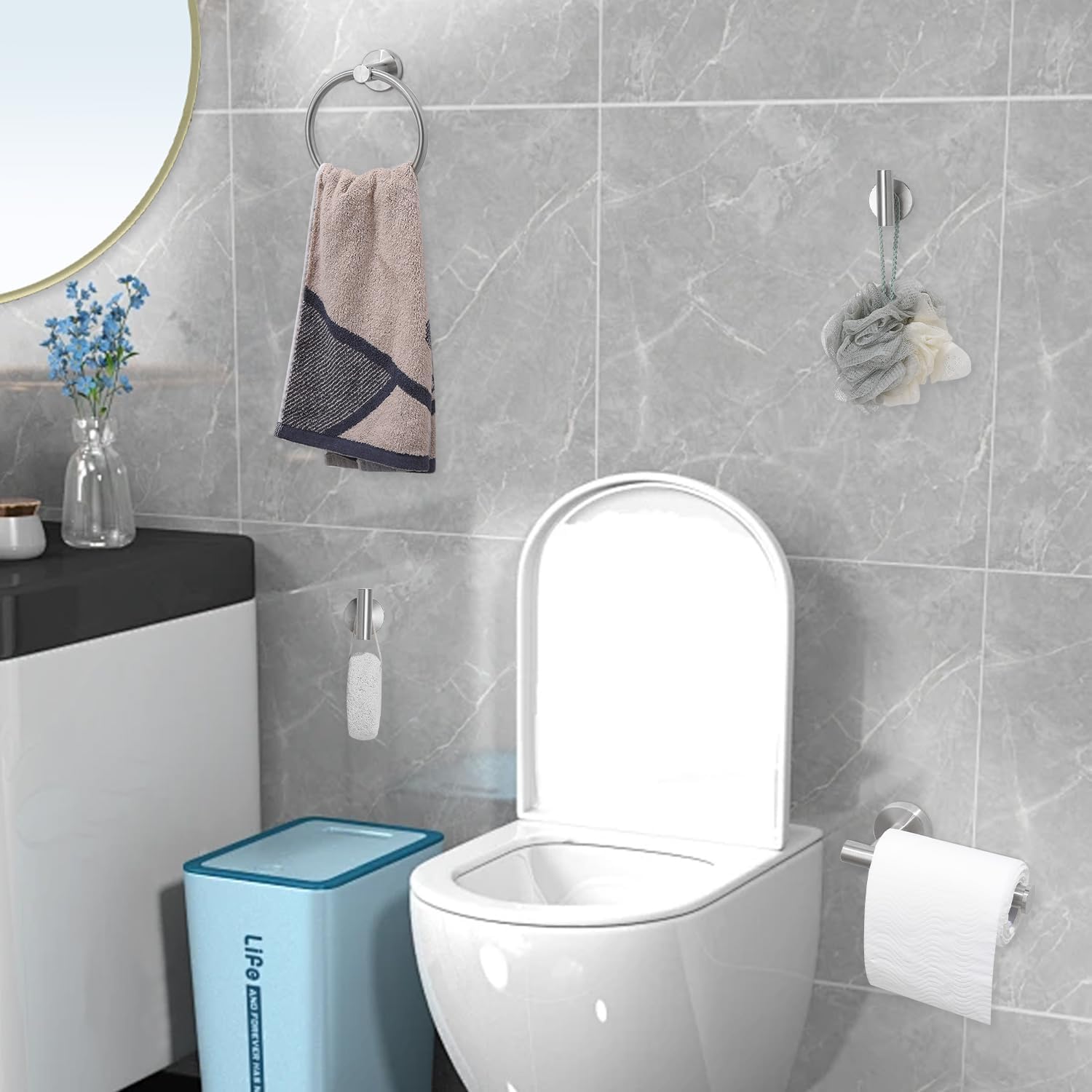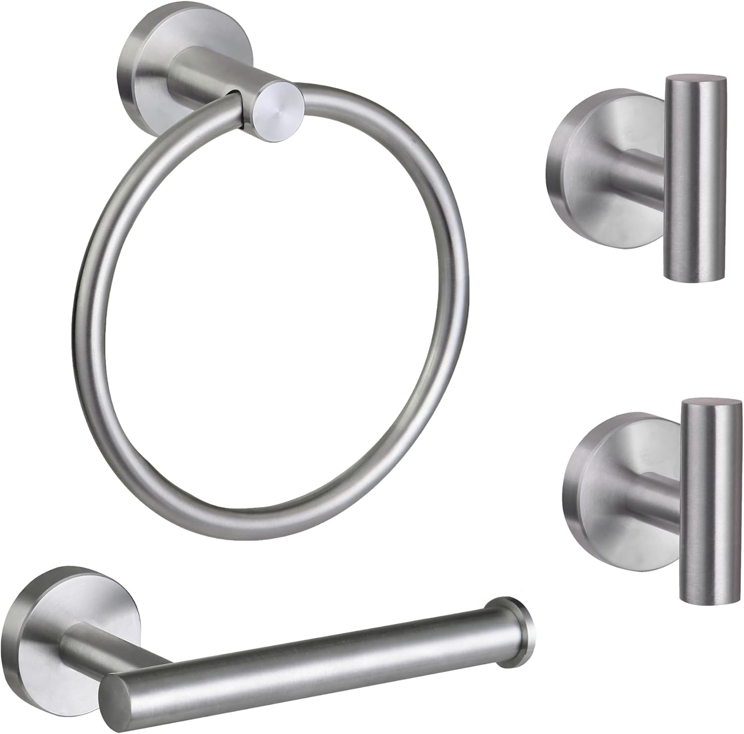 4 Piece Brushed Nickel Bathroom Hardware Set, Modern Towel Ring and Toilet Paper Holder Set,Wall Mounted, Durable SUS304 Stainless Steel Bathroom Accessories Set