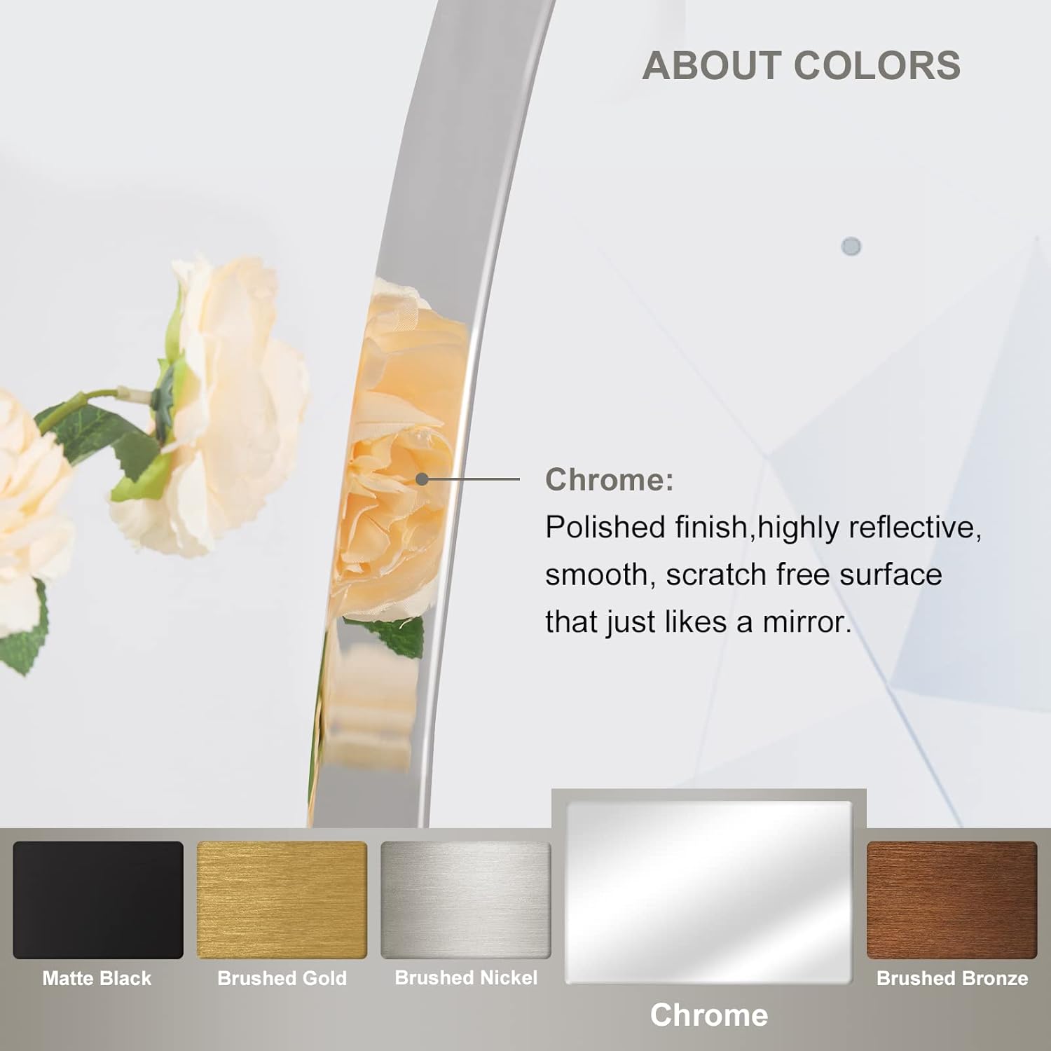 - Sleek Seamless Metal Frame: Say goodbye to the seam aluminum alloy frame that looks so cheap and low quality; Our chrome mirror is made with stainless steel and offers a seamless metal frame to avoid any damage; Invest the best to enjoy lasting beauty