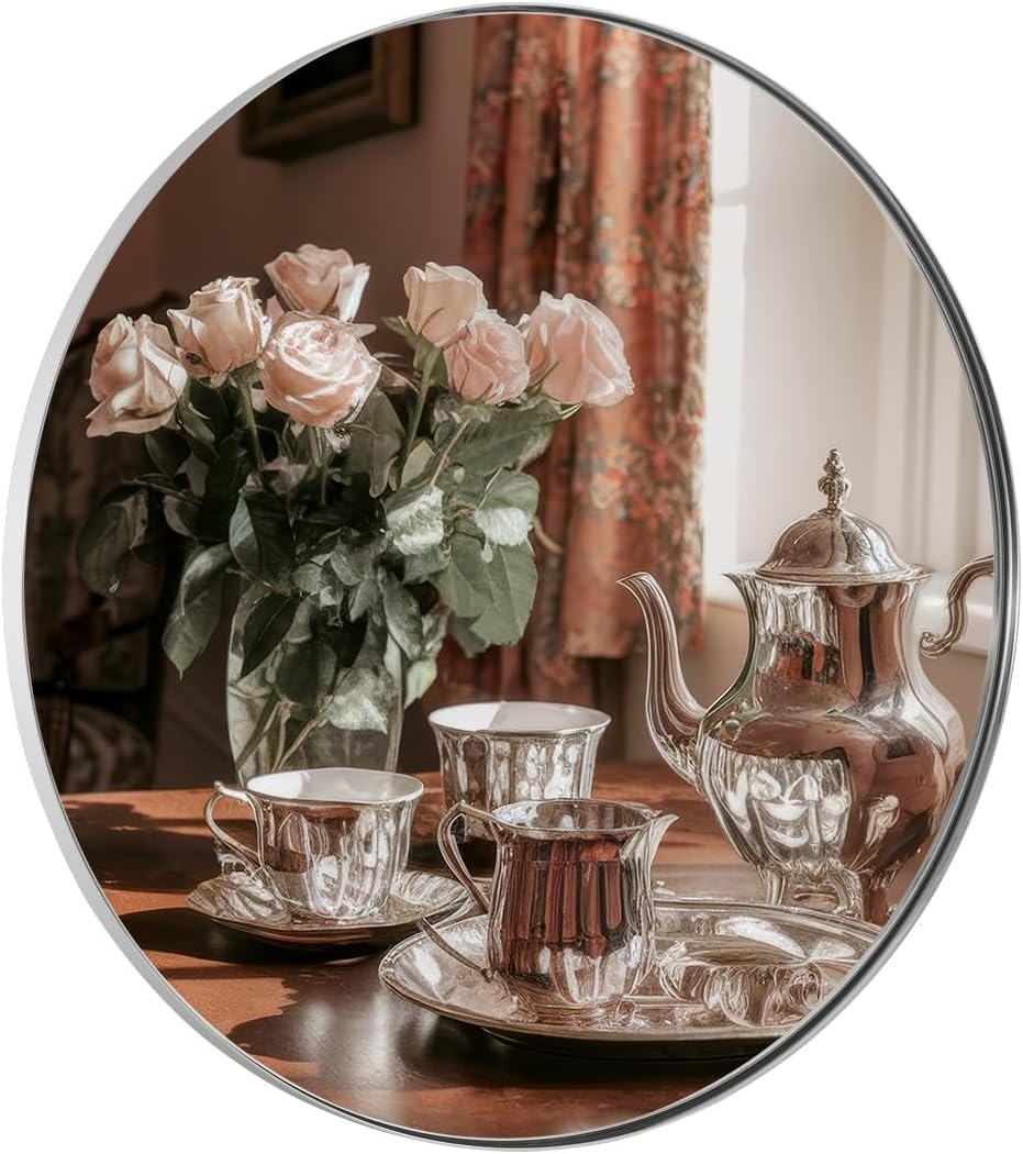 - Beautiful and Upgraded Design: With a classic round design, our 24-inch chrome circle mirror highlights the personality and keeps stylish and simple; With a clean, timeless design, this chrome mirror will creates an attractive, modern look in any room
