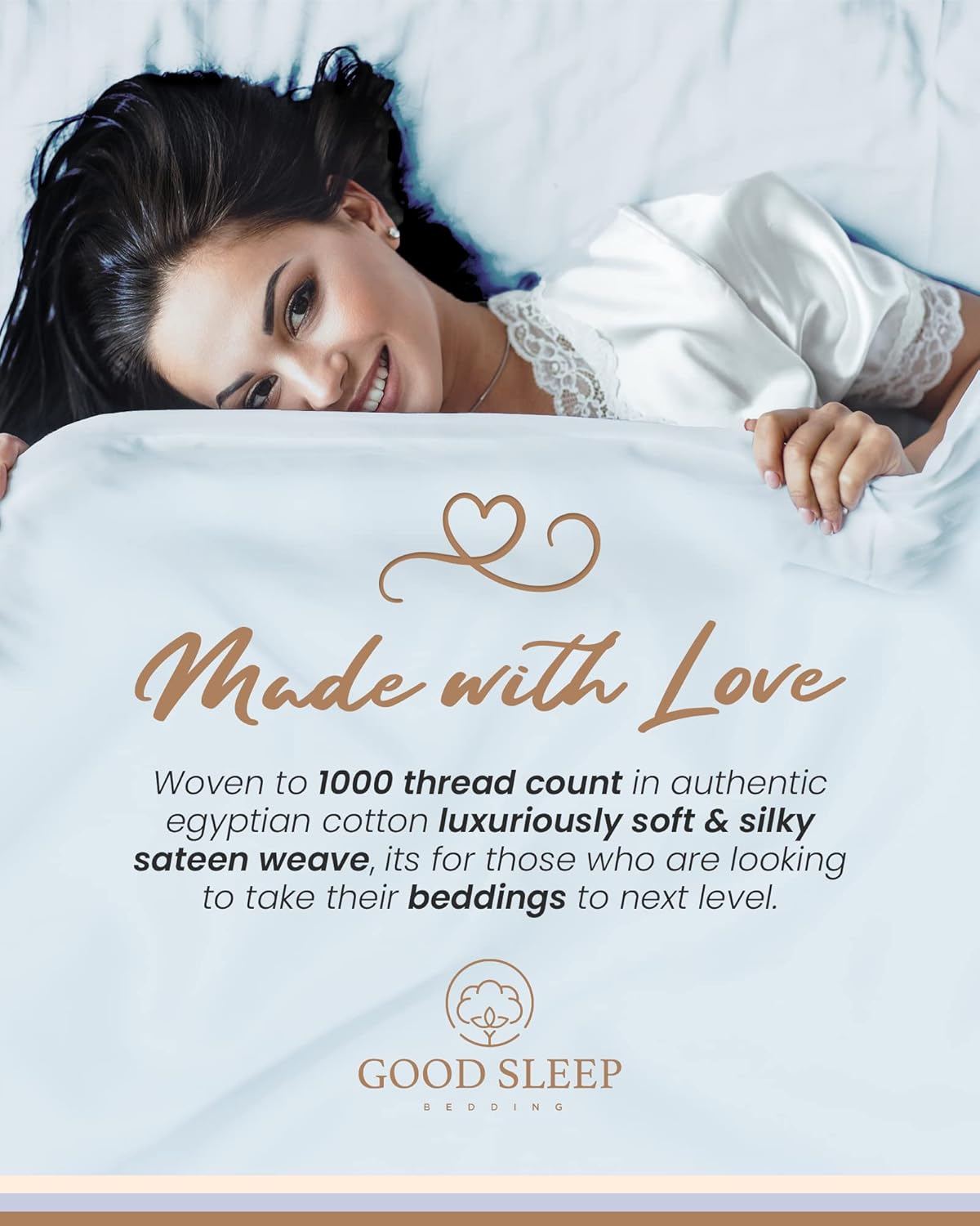 - Luxurious Light Blue Sheets Queen : Our premium sheet sets queen size made from 100% Egyptian Cotton provides you unparalleled luxury, and Comfort. These queen size deep pocket sheet sets comes with high 1000 Thread Count. Our bed sheets queen size cotton ensures a silk smooth feel through out the night. Good Sleep Bedding queen size cooling sheets are super soft and provides hotel luxury.