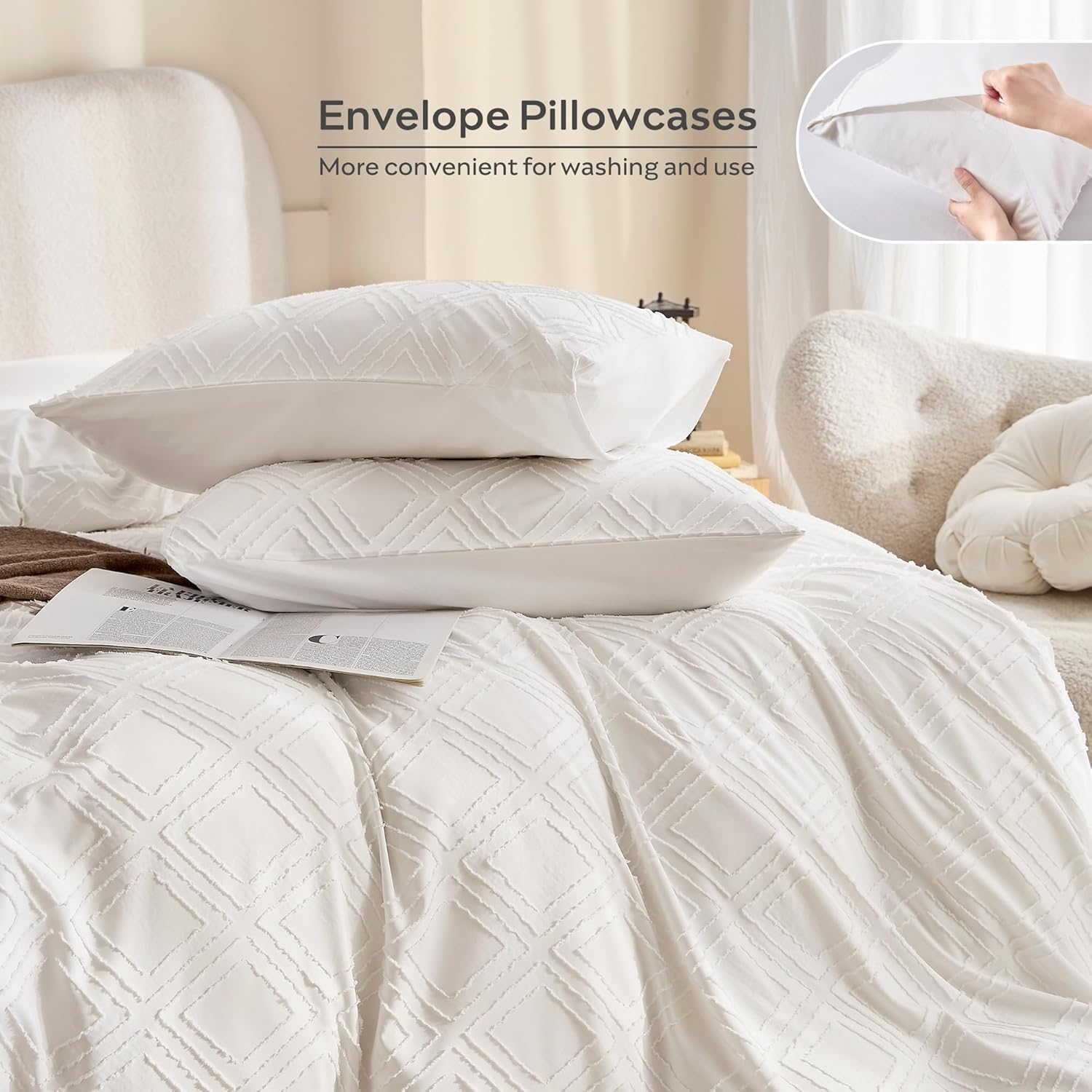 - Design: Chic and sophisticated double diamond-shaped embroidery tufted design with high-quality hidden zipper and corner ties, provides you an eye-catching luxurious decor to your bedroom.