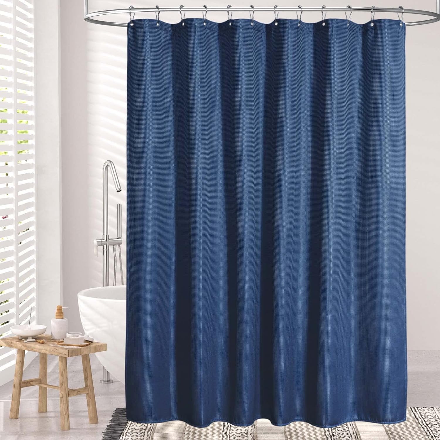 AmazerBath Waffle Shower Curtain, Navy Blue Fabric Shower Curtain with Waffle Weave, Heavy Duty Hotel Quality, 72 x 72 Inches