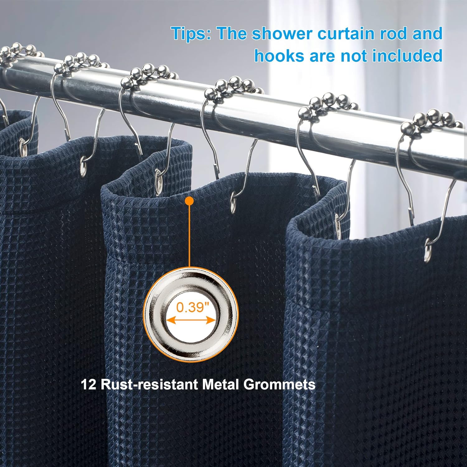 - Easy installation - Each waffle shower curtain has 12 rust-resistant metal grommets which fit most curtain hooks. The 72x72 Inches navy blue shower curtain fits most standard-sized bathtubs and showers.