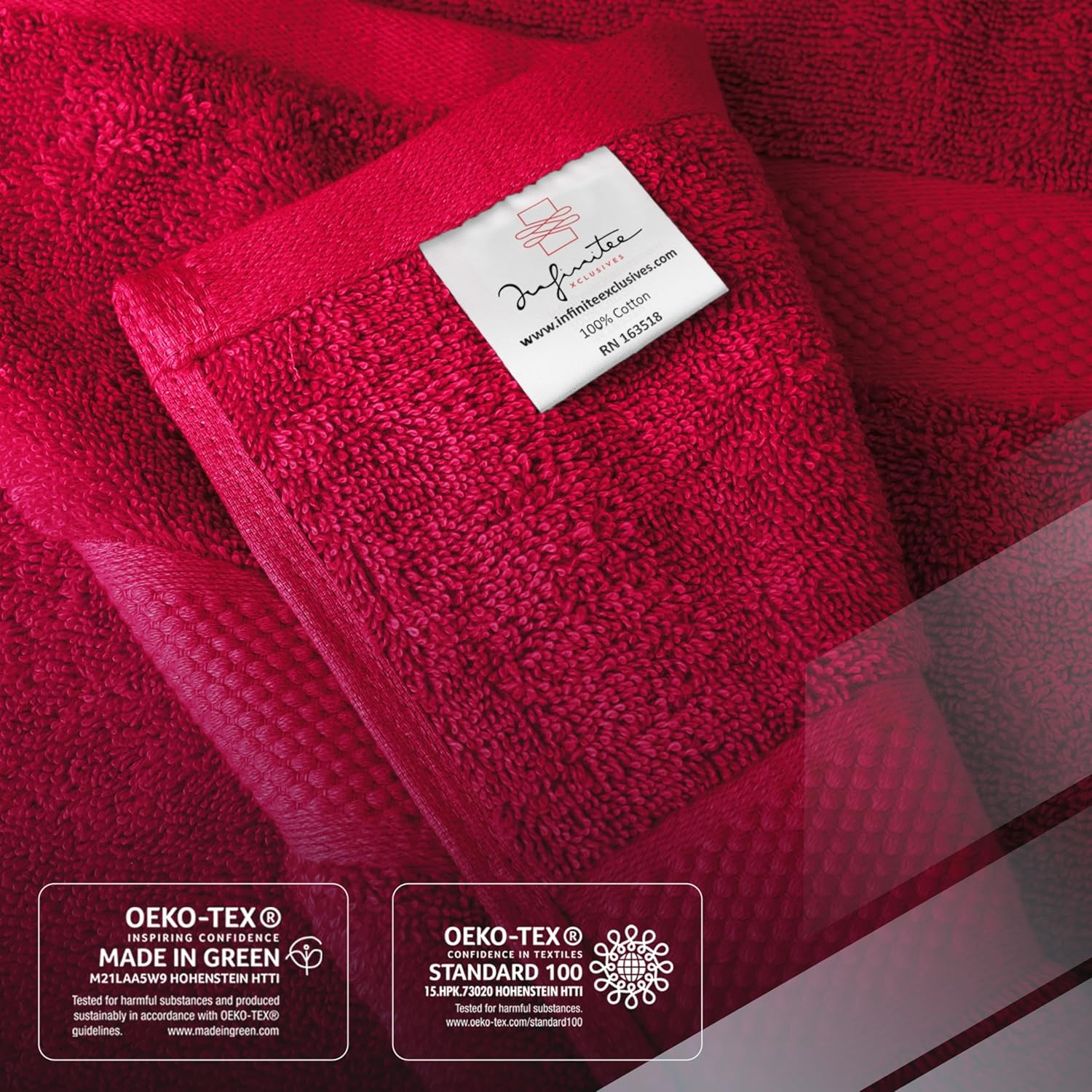Infinitee Xclusives Luxury 100% Cotton Towel Set – 8 Piece Bathroom Towel Set (2 Bath Towels, 2 Hand Towels, 4 Washcloths) – Soft & Absorbent Towels for Bathroom (Intimate Red)