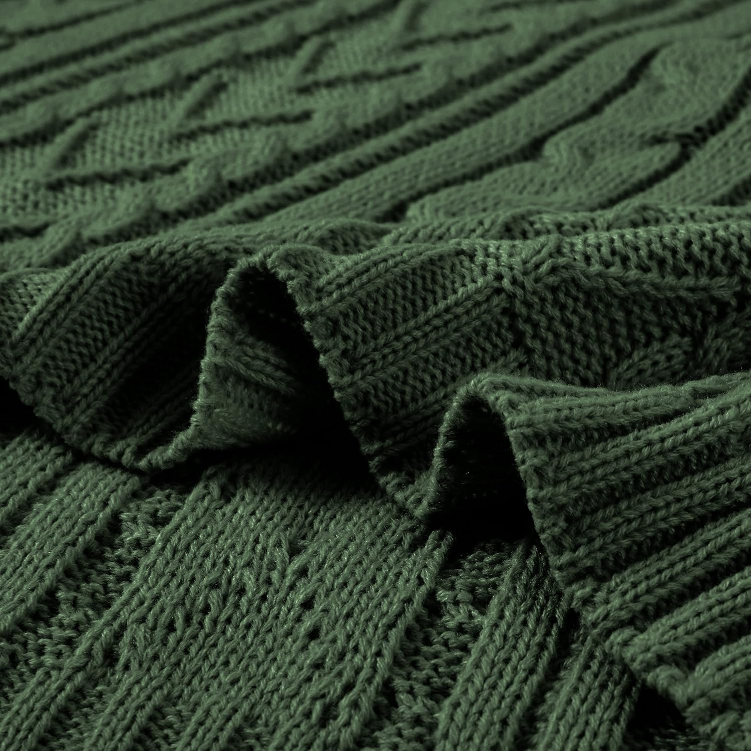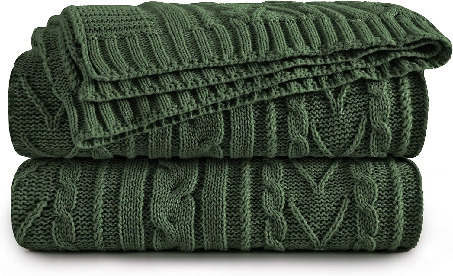 Aormenzy Green Cable Knit Throw Blankets for Couch Bed Sofa, Acrylic Knitted Blanket, Soft Cozy Throw Blanket, 50" x 60"