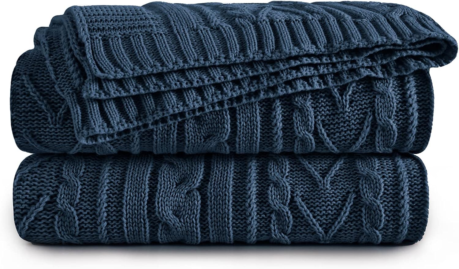 Aormenzy Navy Blue Cable Knit Throw Blanket Oversized 60" x 80" Super Soft Comfy Knitted Blanket for Couch Bed Sofa, Twin Size