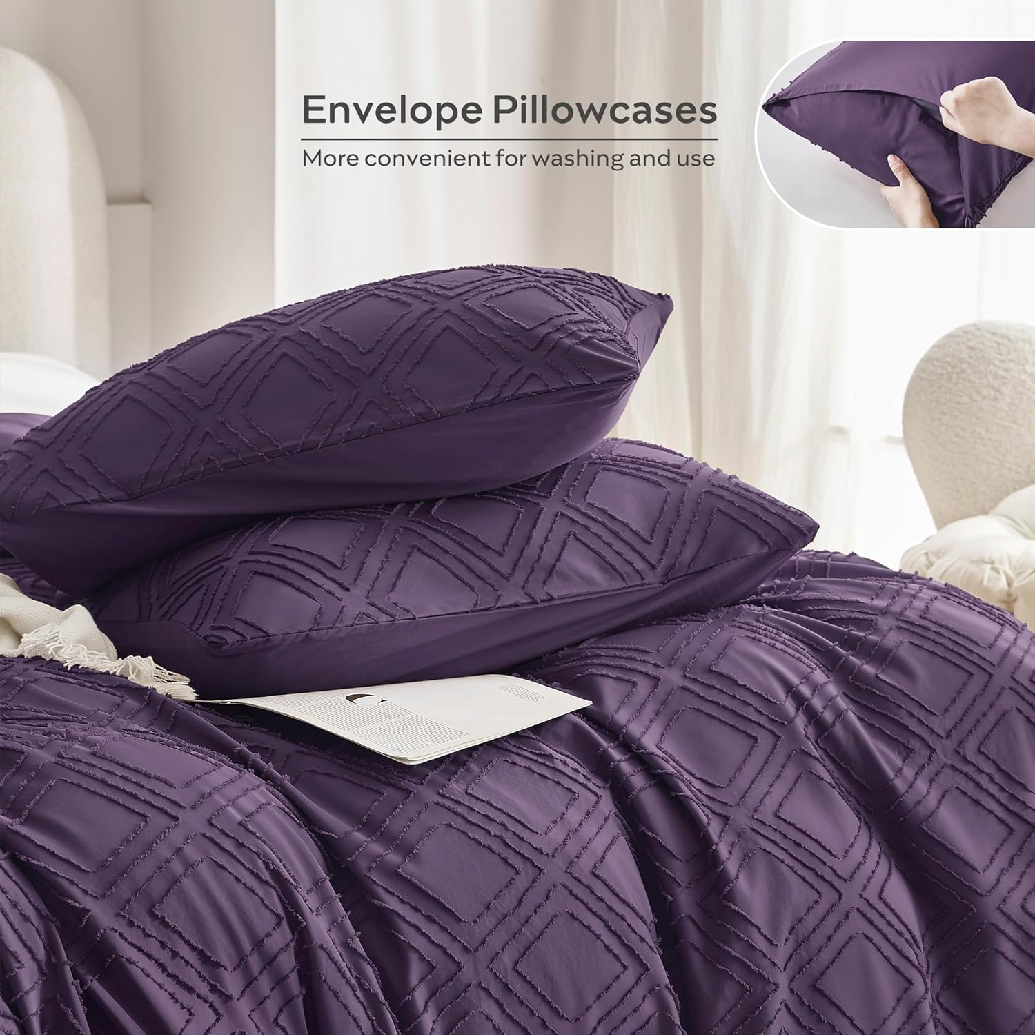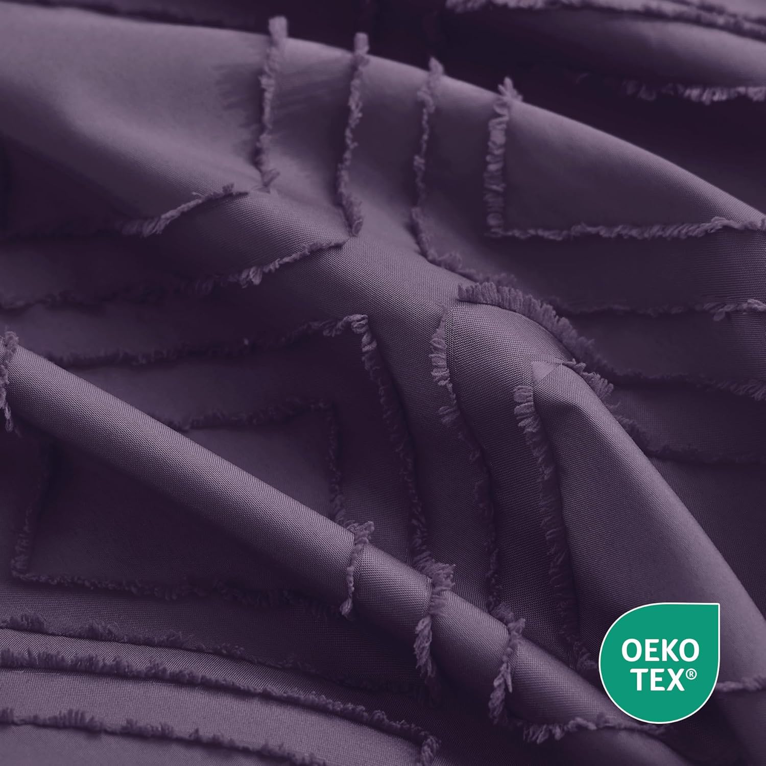 JELLYMONI Duvet Cover Queen Size Purple - 3PCS Boho Duvet Cover Set Plaid Polyester Tufted Bohemian Jacquard Knit Textured Comforter Cover 90×90in Rhombic Geometric Pattern Zipper Corner Tie